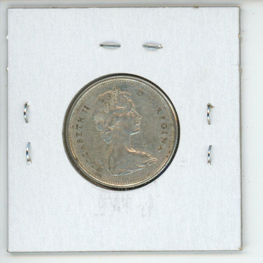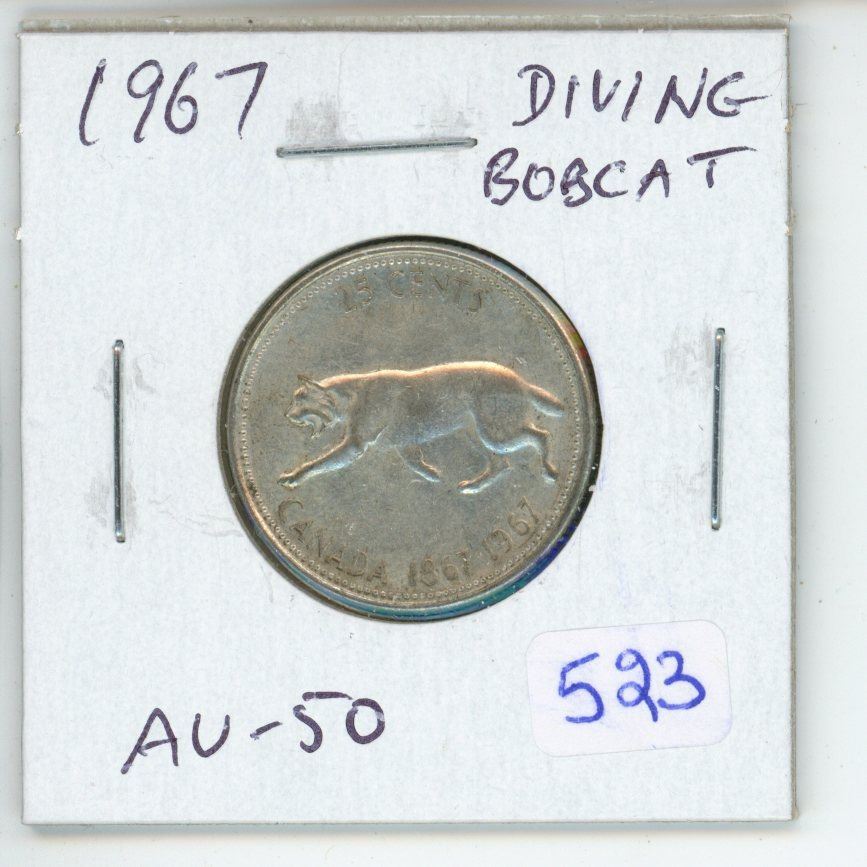1967 Diving Bobcat Silver 25 Cents. Rotated Die. AU-50. Scarce.