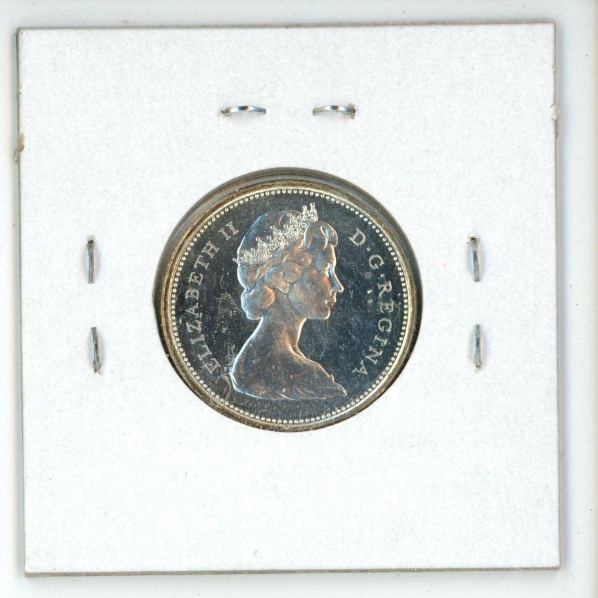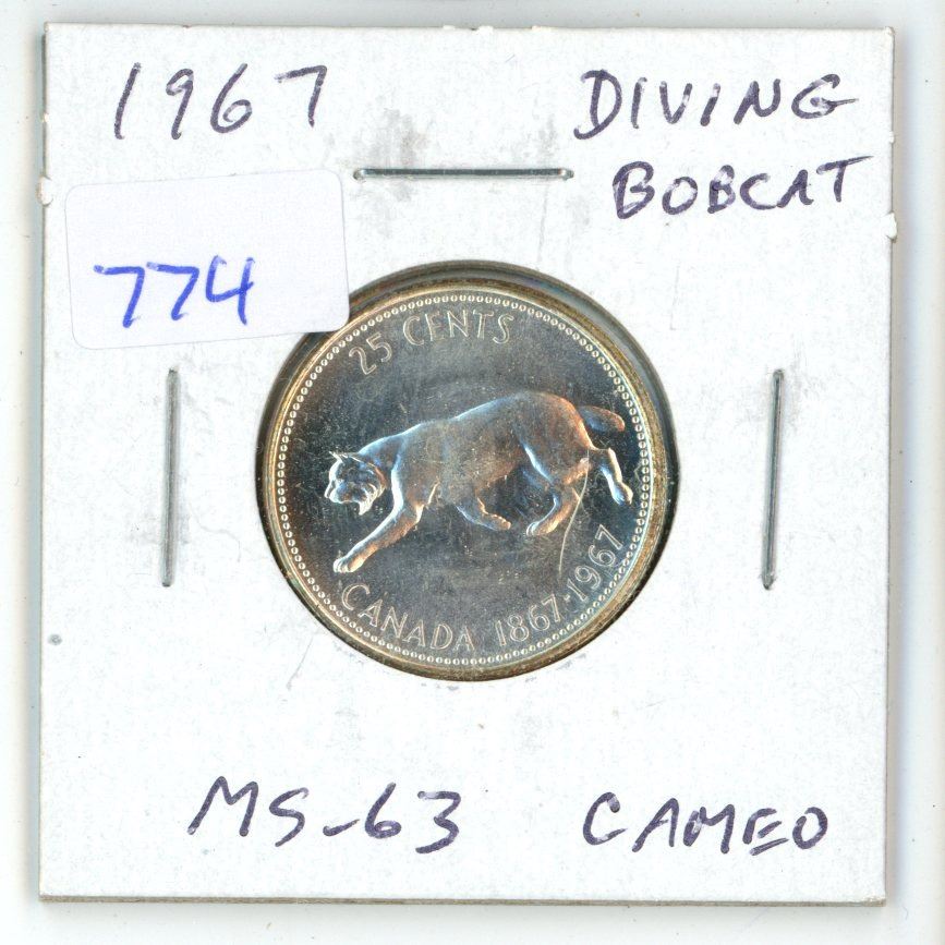 1967 Diving Bobcat Silver 25 Cents. Rotated Die. MS-63 with Cameo. Scarce.