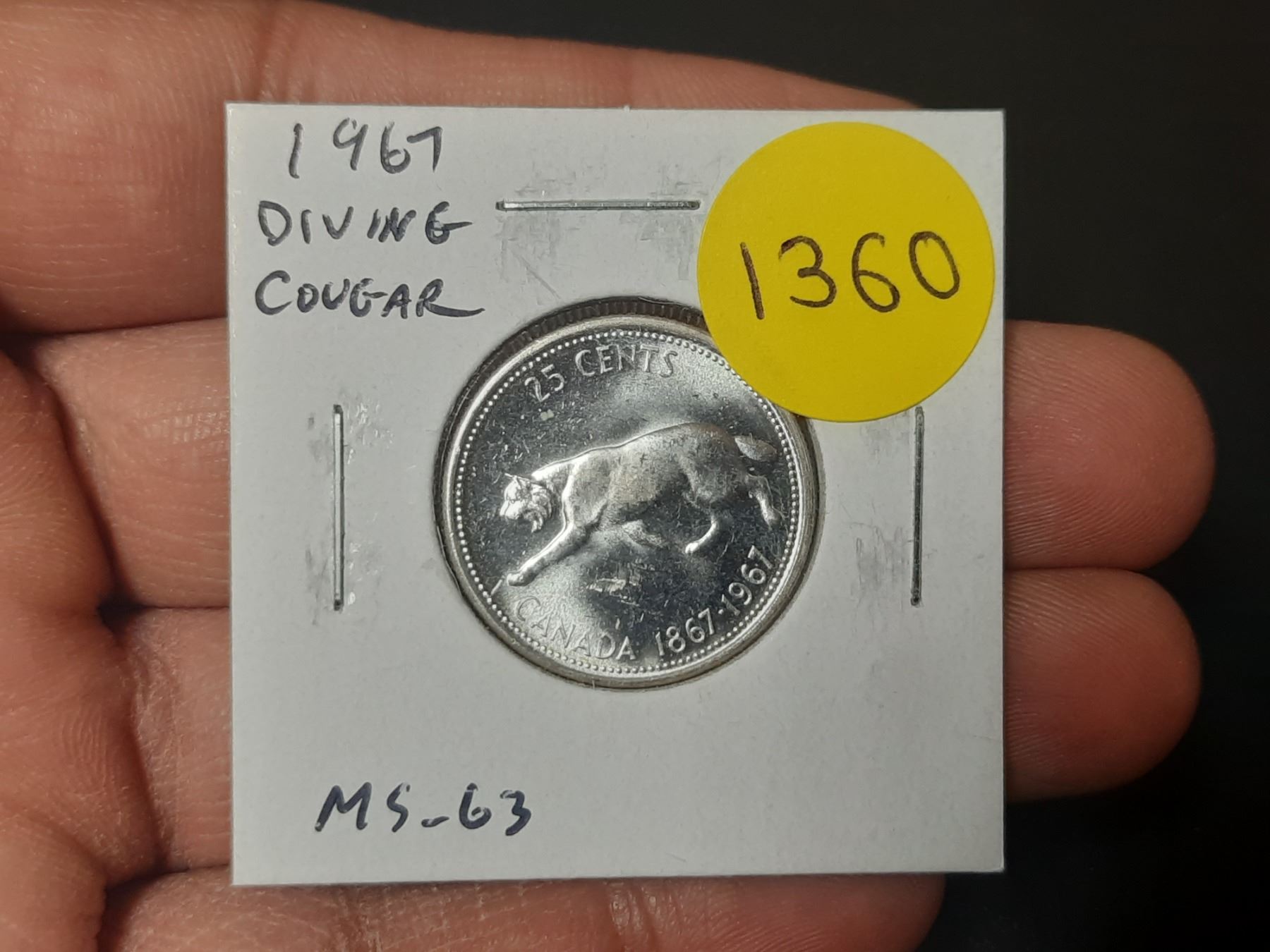 1967 Diving Cougar 25 Cents. Rotated Die. MS63. Scarce.