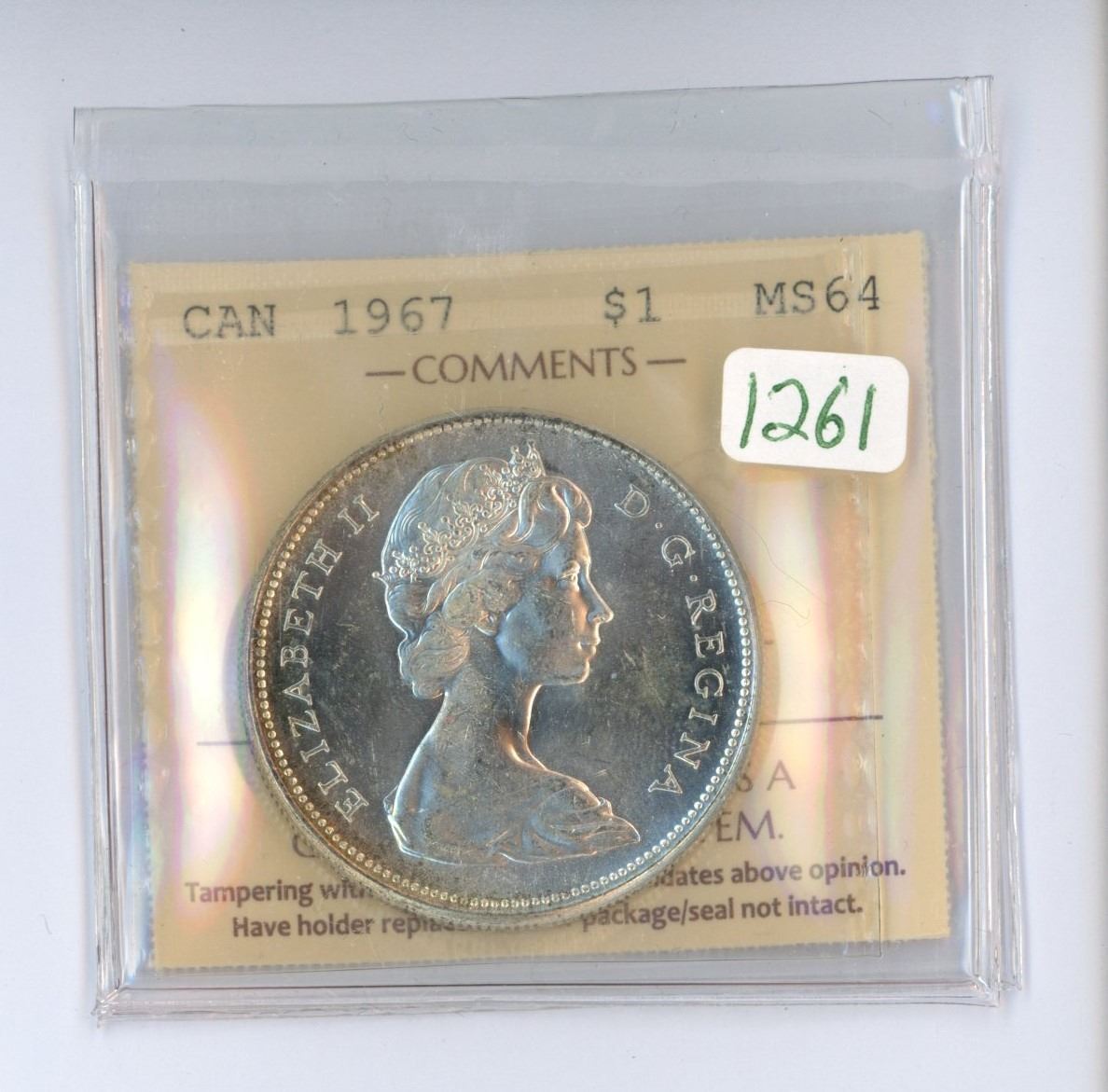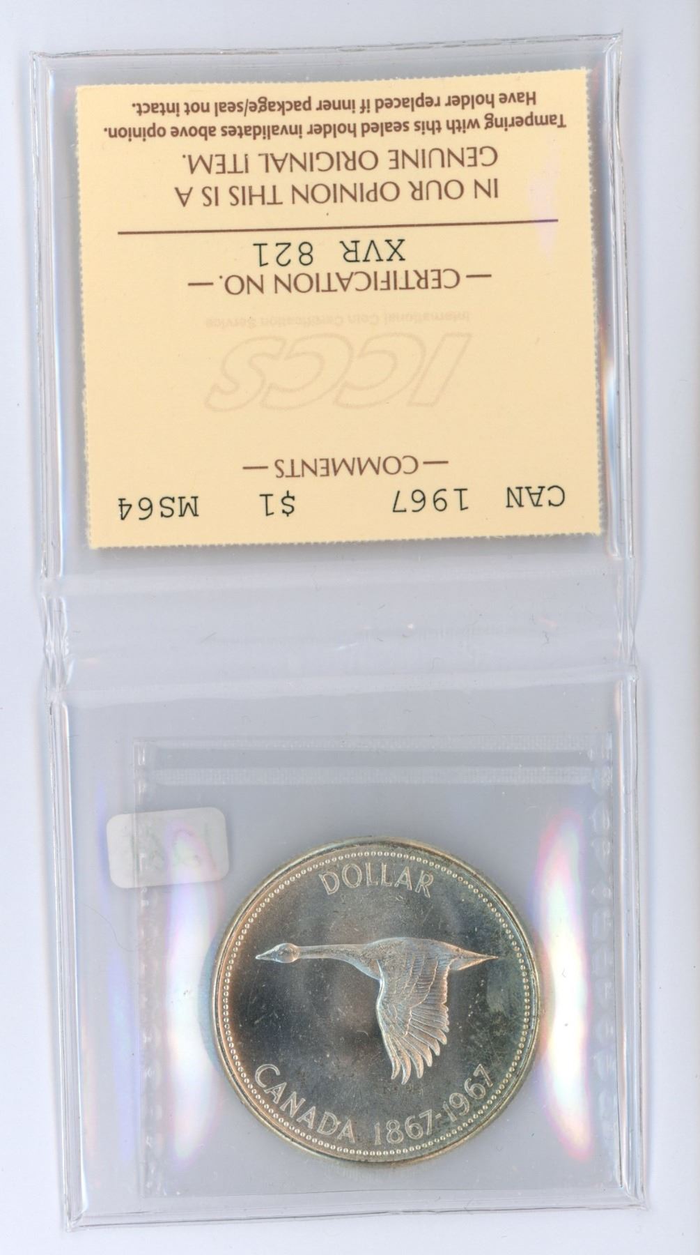 1967 ICCS graded, Canadian centennial silver "goose" dollar - MS64