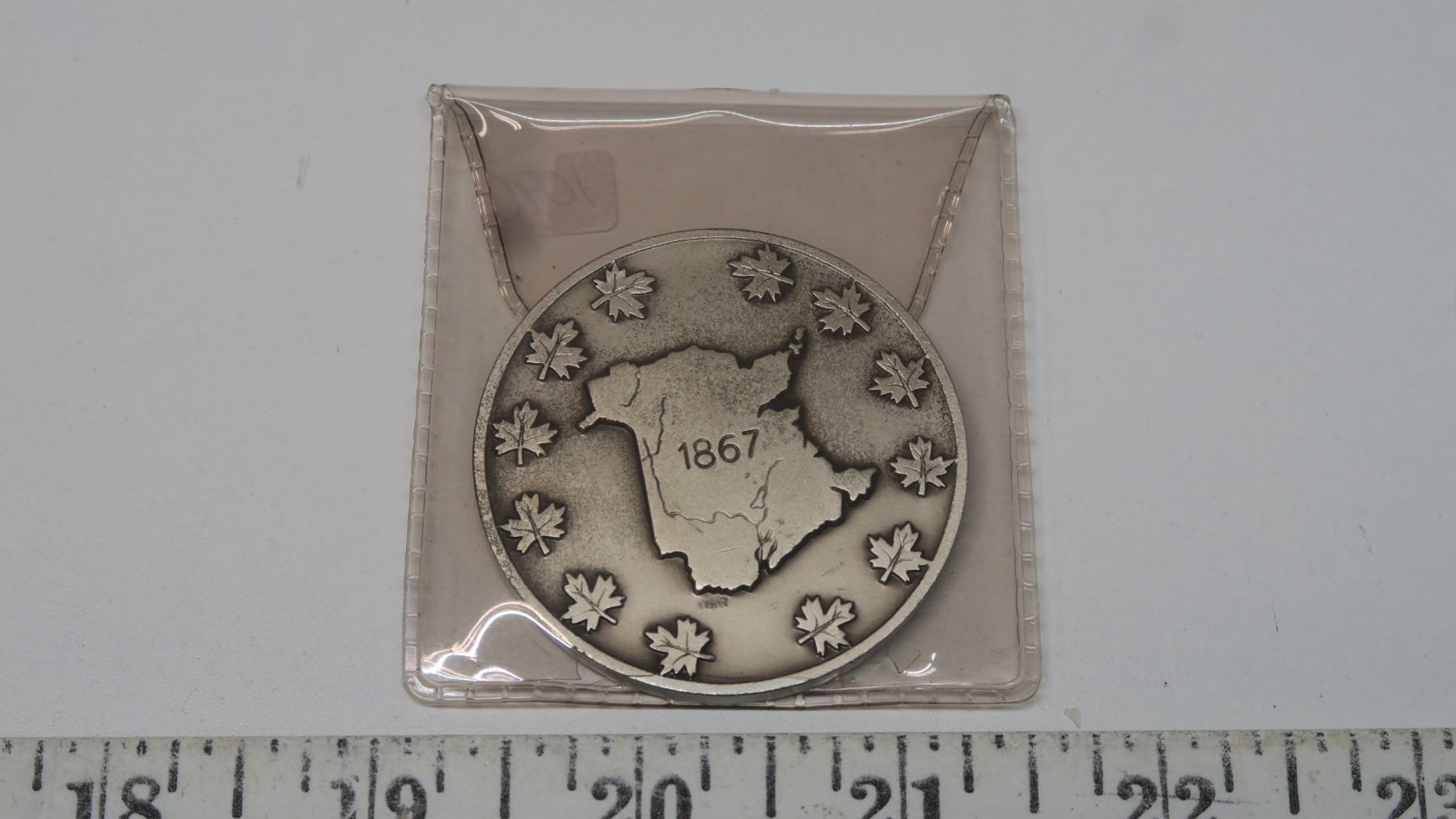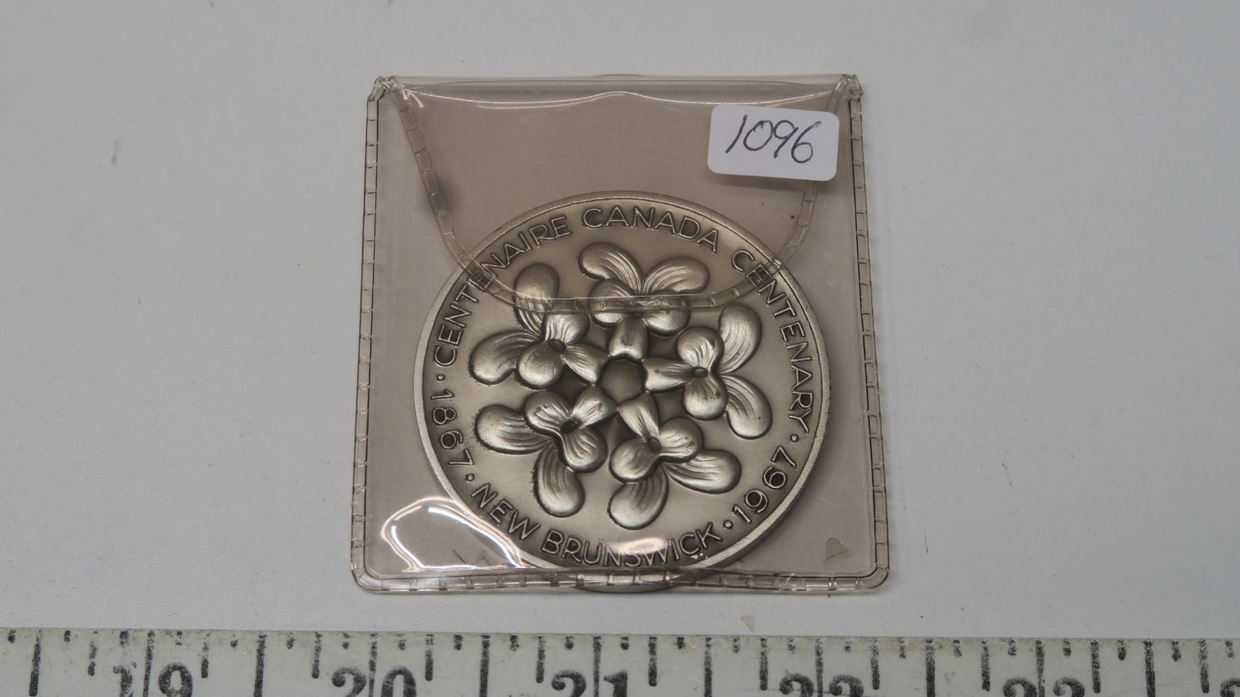 1967 New Brunswick Centennial Medal. Huge 50mm Silver Plated medal depicting the provincial flower and map of New Brunswick. BU. Scarce.