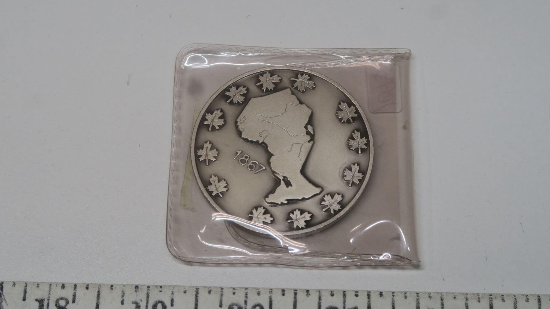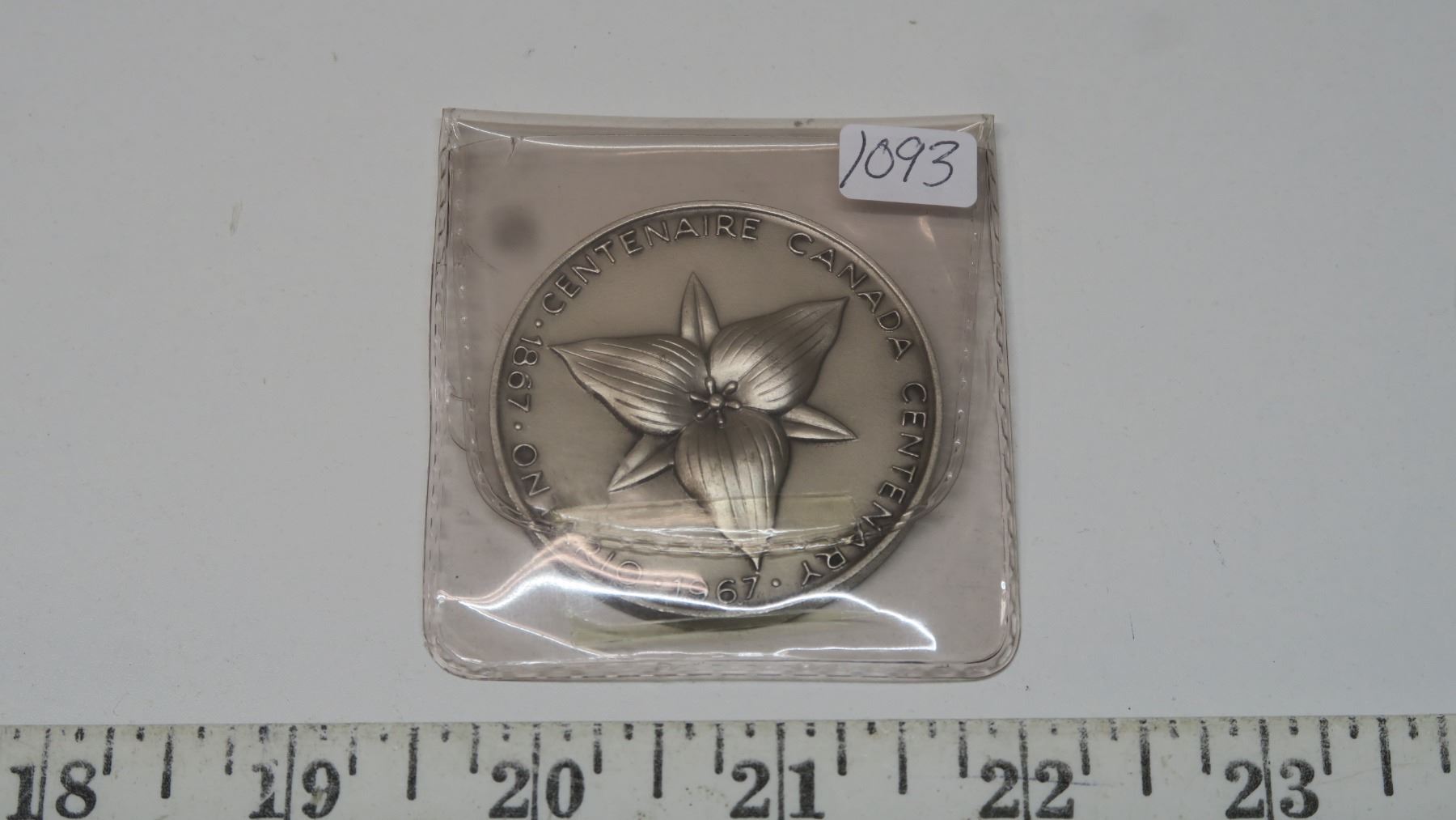 1967 Ontario Centennial Medal. Huge 50mm Silver Plated medal depicting the provincial flower and map of Ontario. BU. Scarce.