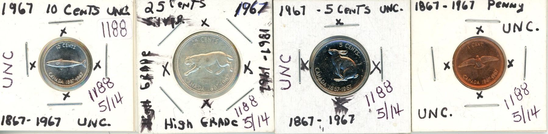 1967 Quarter, Dime, Nickel & Penny