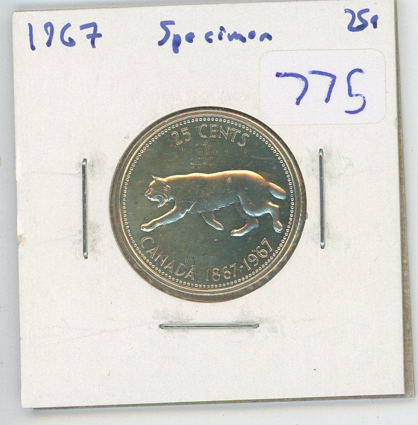 1967 SPECIMEN CANADIAN 25 CENT PIECE