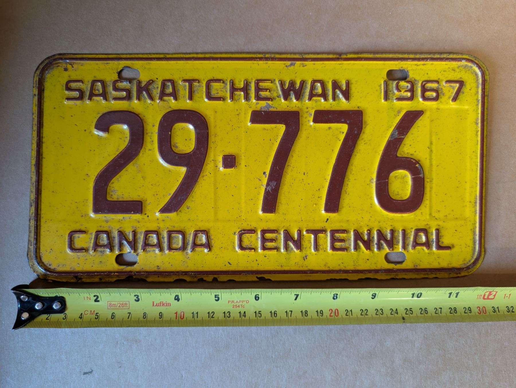 1967 Saskatchewan Plate 29-776 Canada Centennial