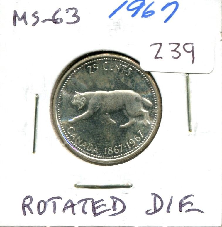 1967 Silver 25 Cents. MS-63. Rotated Die. Brilliant. Lustrous. Nice.