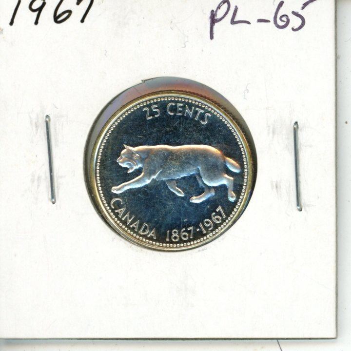 1967 Silver 25 Cents. Proof-Like 65. A beautiful coin.