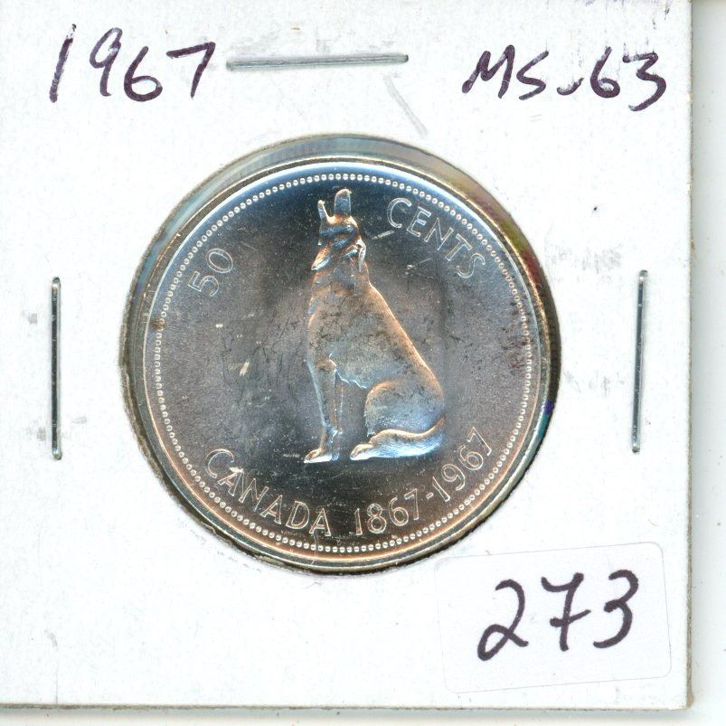 1967 Silver 50 Cents. Howling Wolf. MS-63. Bright White.