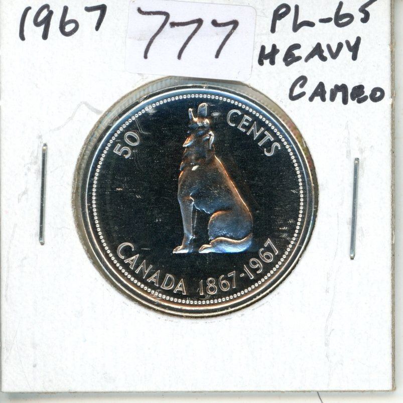 1967 Silver 50 Cents. Howling Wolf. Proof-Like-65 with Heavy Cameo. Bright White. Nice.