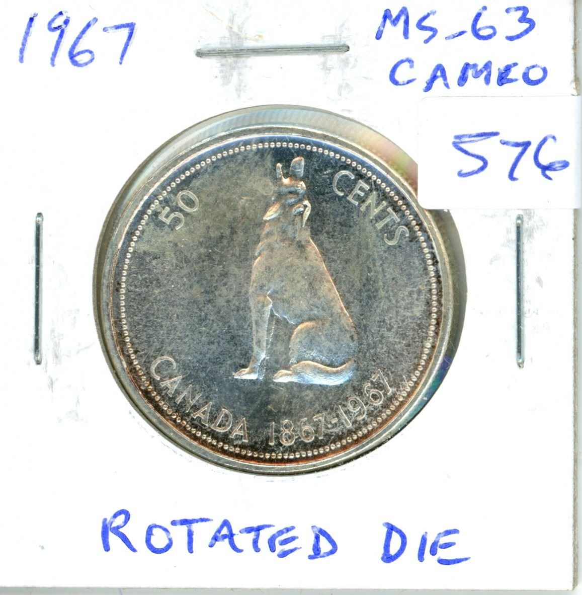 1967 Silver 50 Cents. MS-63 Cameo with Rotated Die. Nice.