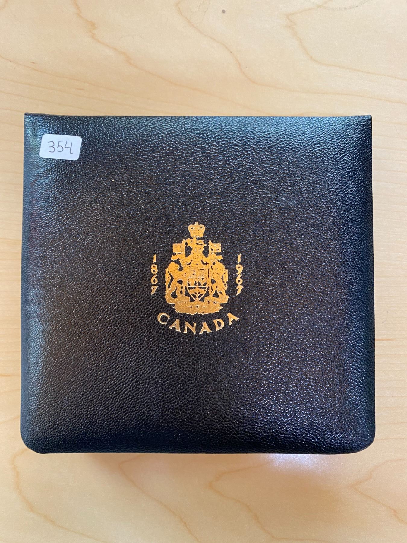1967 Specimen $20 gold set (no gold). Contains the 1 cent, 5 cents, 10 cents, 25 cents, 50 cents and silver dollar, all in Specimen finish. Housed in original black leather presentation case. All coins are brilliant.