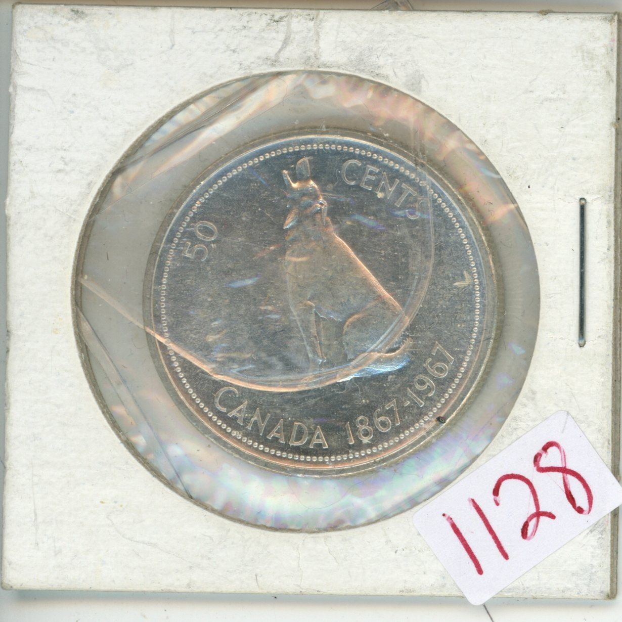 1967 Wolf, Canadian centennial silver 50 cent coin