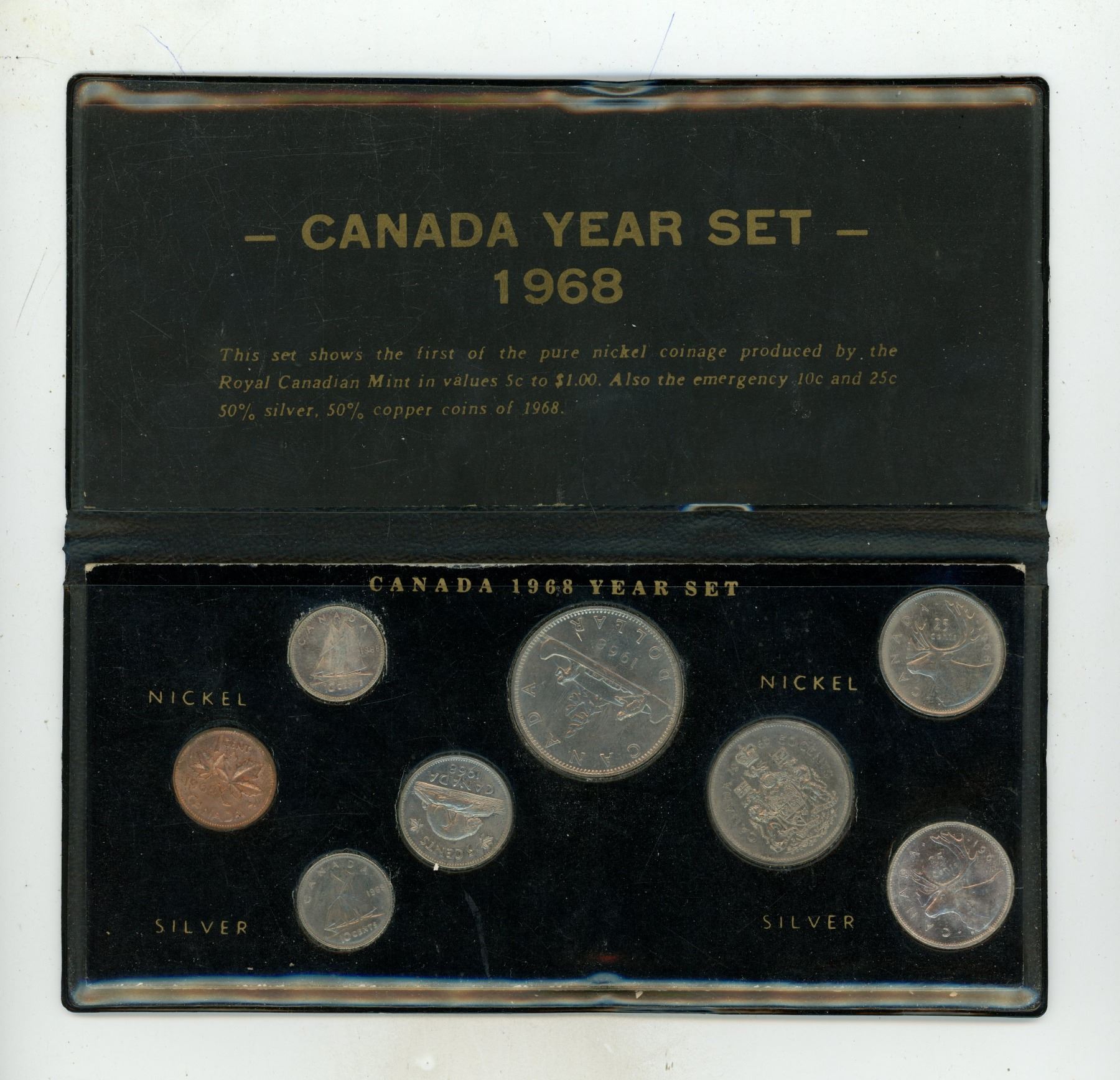 1968 8-coin Year Set. Includes both silver and nickel 10 Cents and 25 Cents.