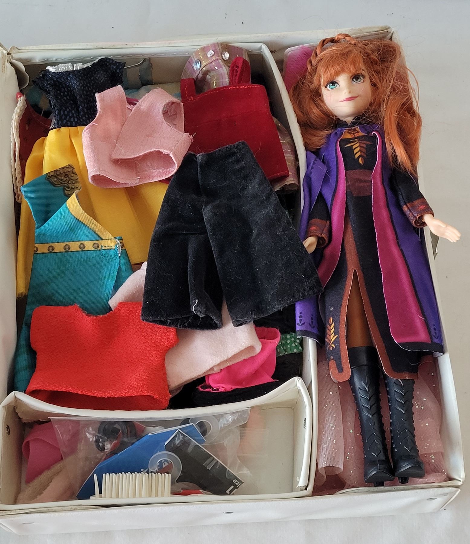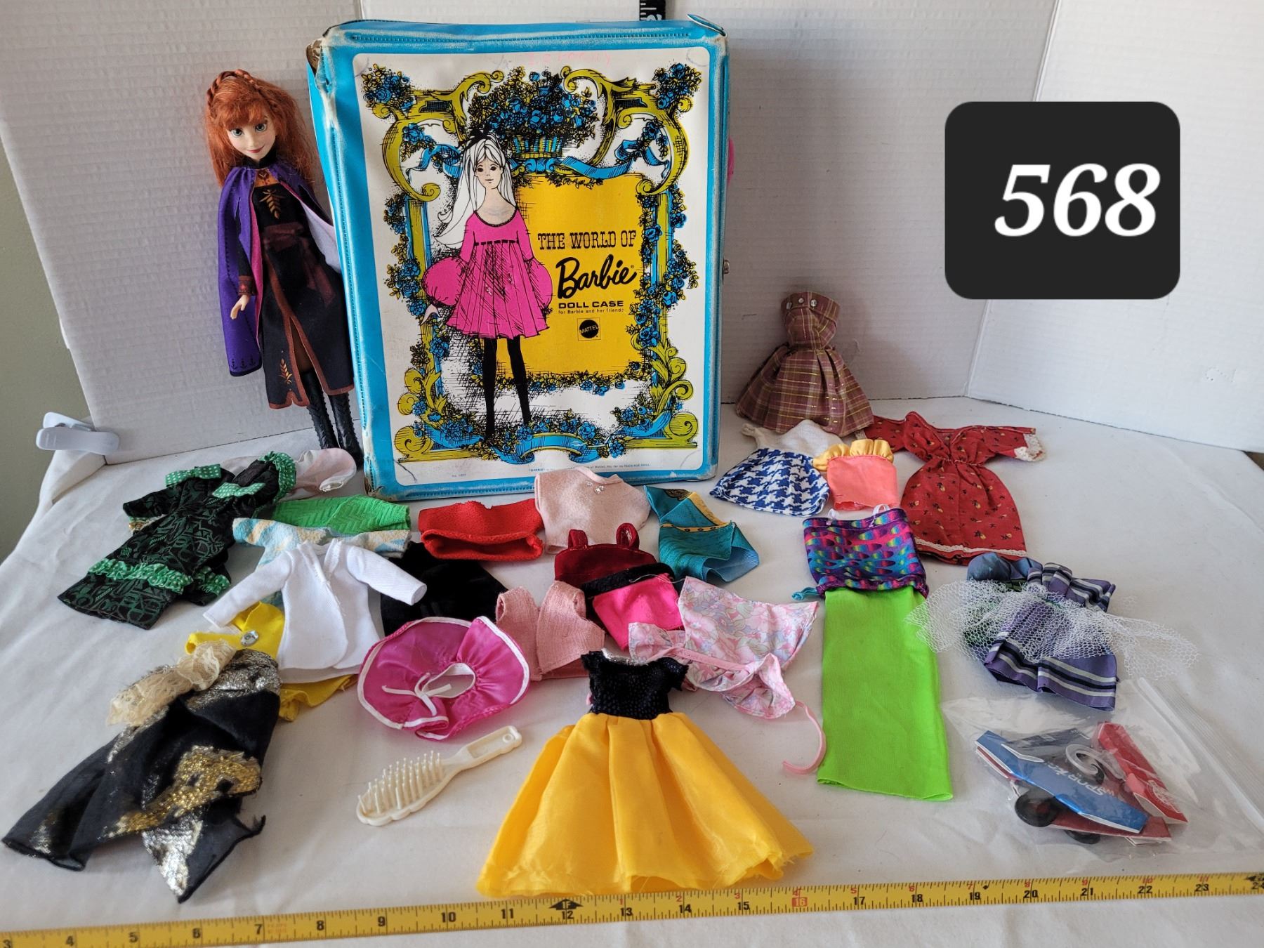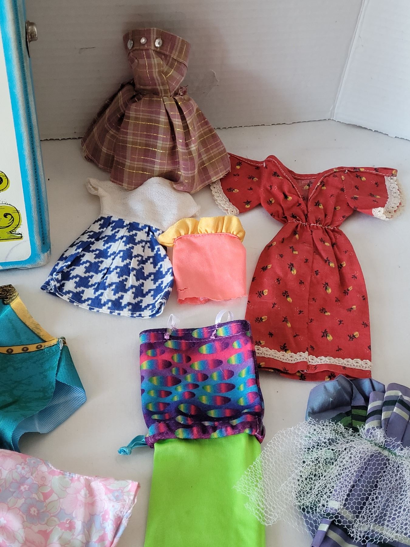 1968 Barbie case with home sewn clothes & Anna Doll.
