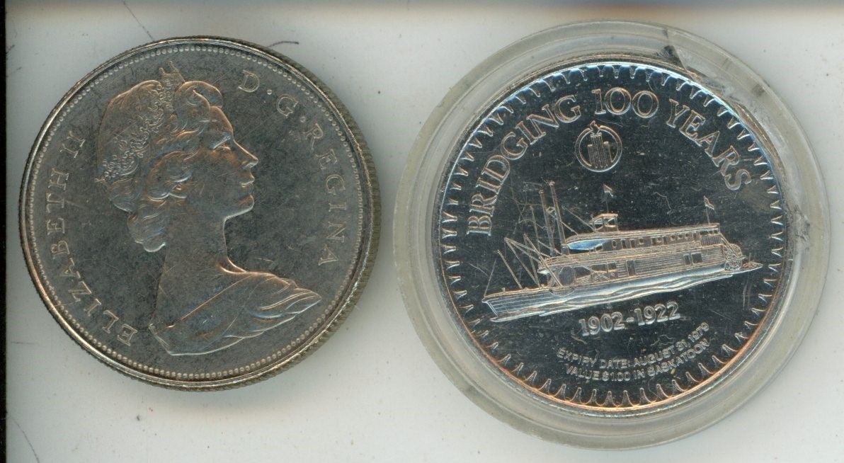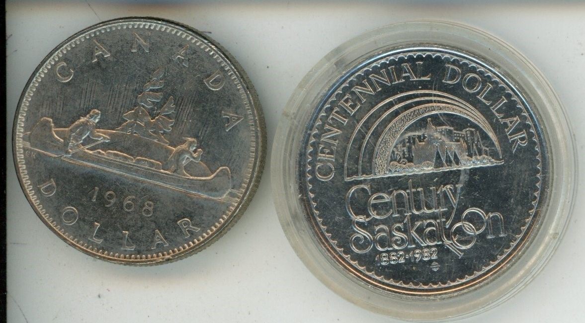 1968 Canadian Dollar + 1882-1982 Centennial Dollar Century Saskatoon token