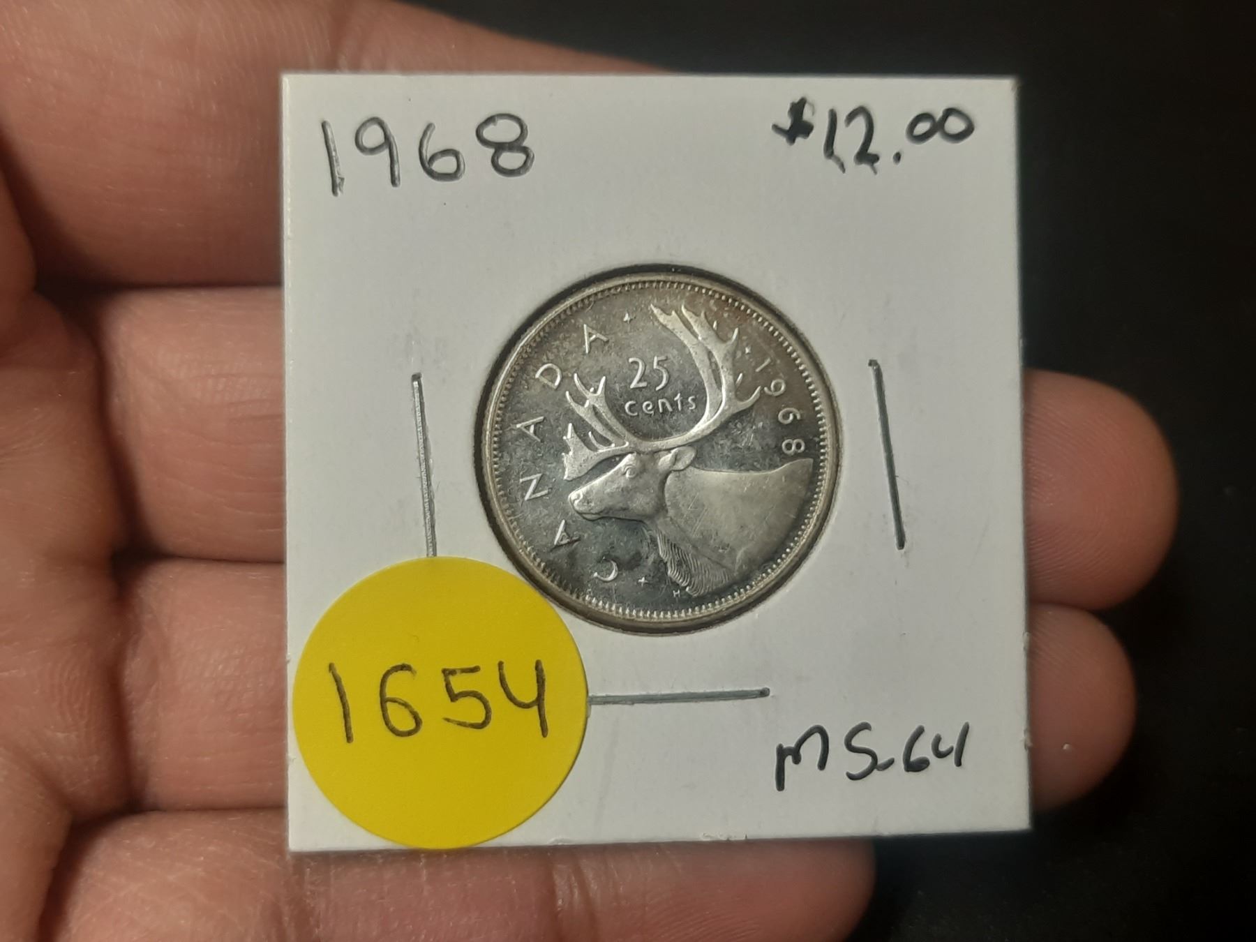 1968 MS-60 Canadian Silver Twenty Five Cents .500