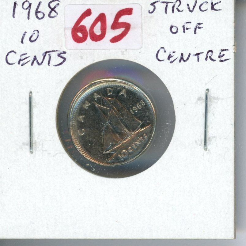 1968 Nickel 10 Cents Struck Off Centre with baseball cap effect. MS-63.