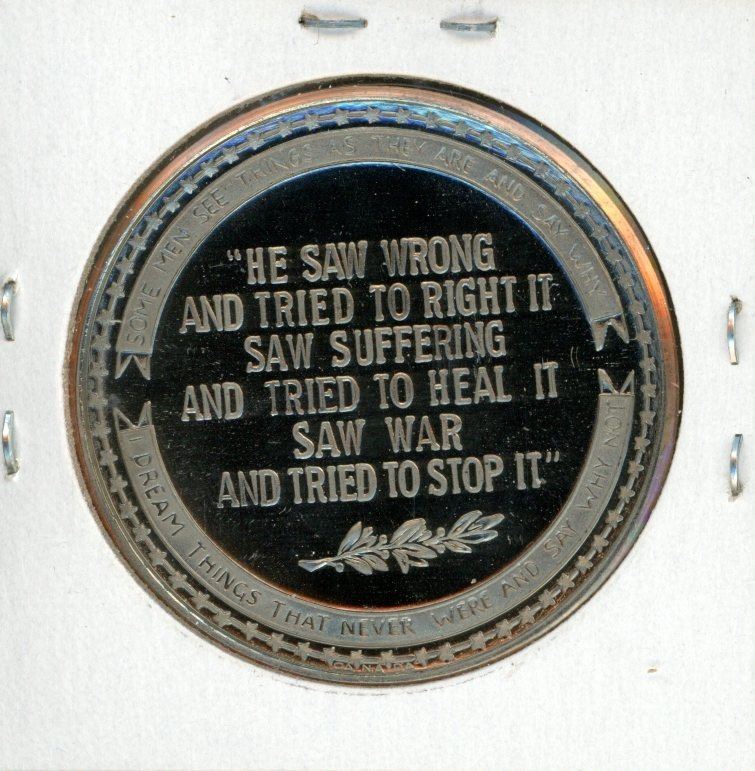 1968 Robert F. Kennedy memorial medal (1925 – 1968). “He saw wrong and tried to right it, saw suffering and tried to heal it, saw war and tried to stop it.” BU. Nice.