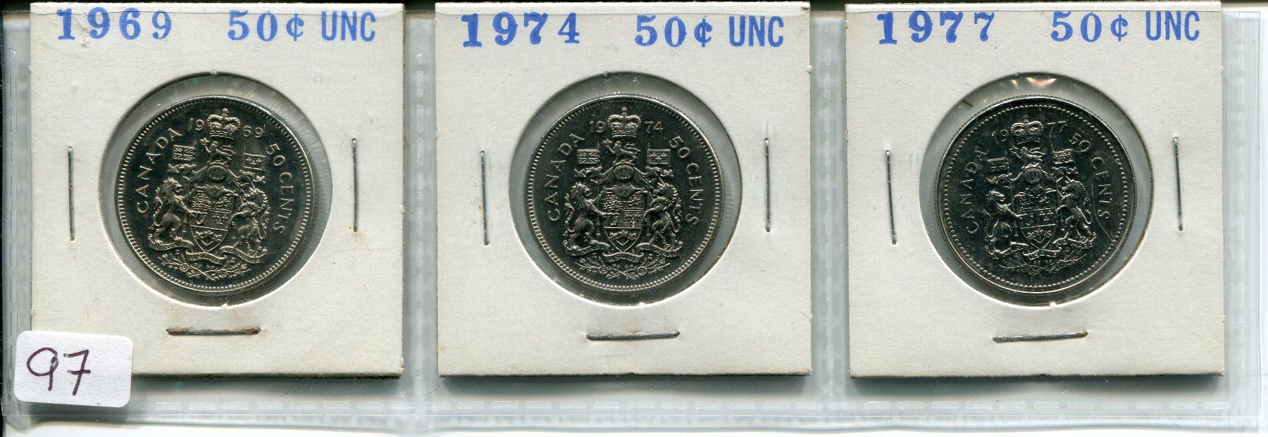 1969, 1974, 1977 3X CANADIAN SILVER 50 CENT COINS *UNC*