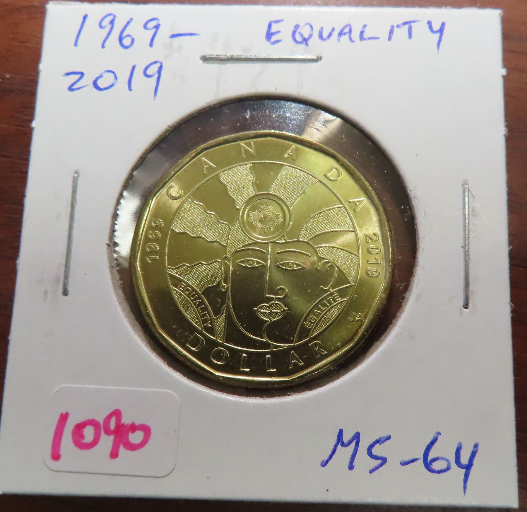 1969 – 2019 Equality Loonie Dollar. 50th Anniversary of the decriminalization of homosexuality in Canada. MS-64 from a mint roll.