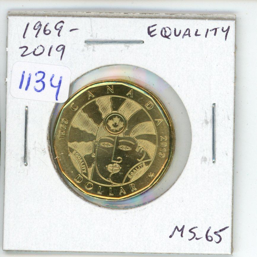 1969 – 2019 Equality Loonie Dollar. Commemorates the 50th Anniversary of the decriminalization of homosexuality in Canada. MS-65. High grade.