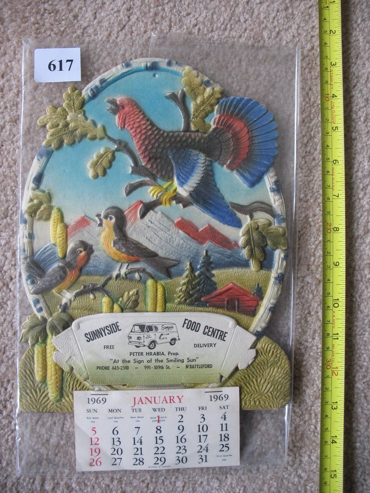 1969 EMBOSSED CALENDAR - SUNNYSIDE - NORTH BATTLEFORD