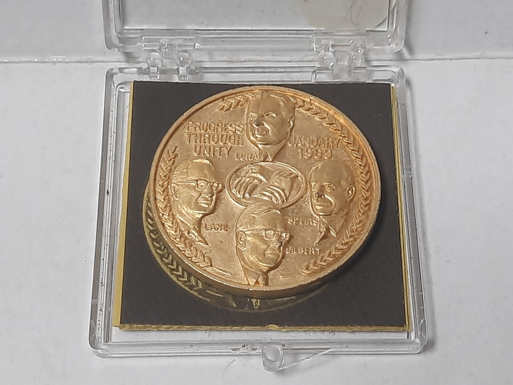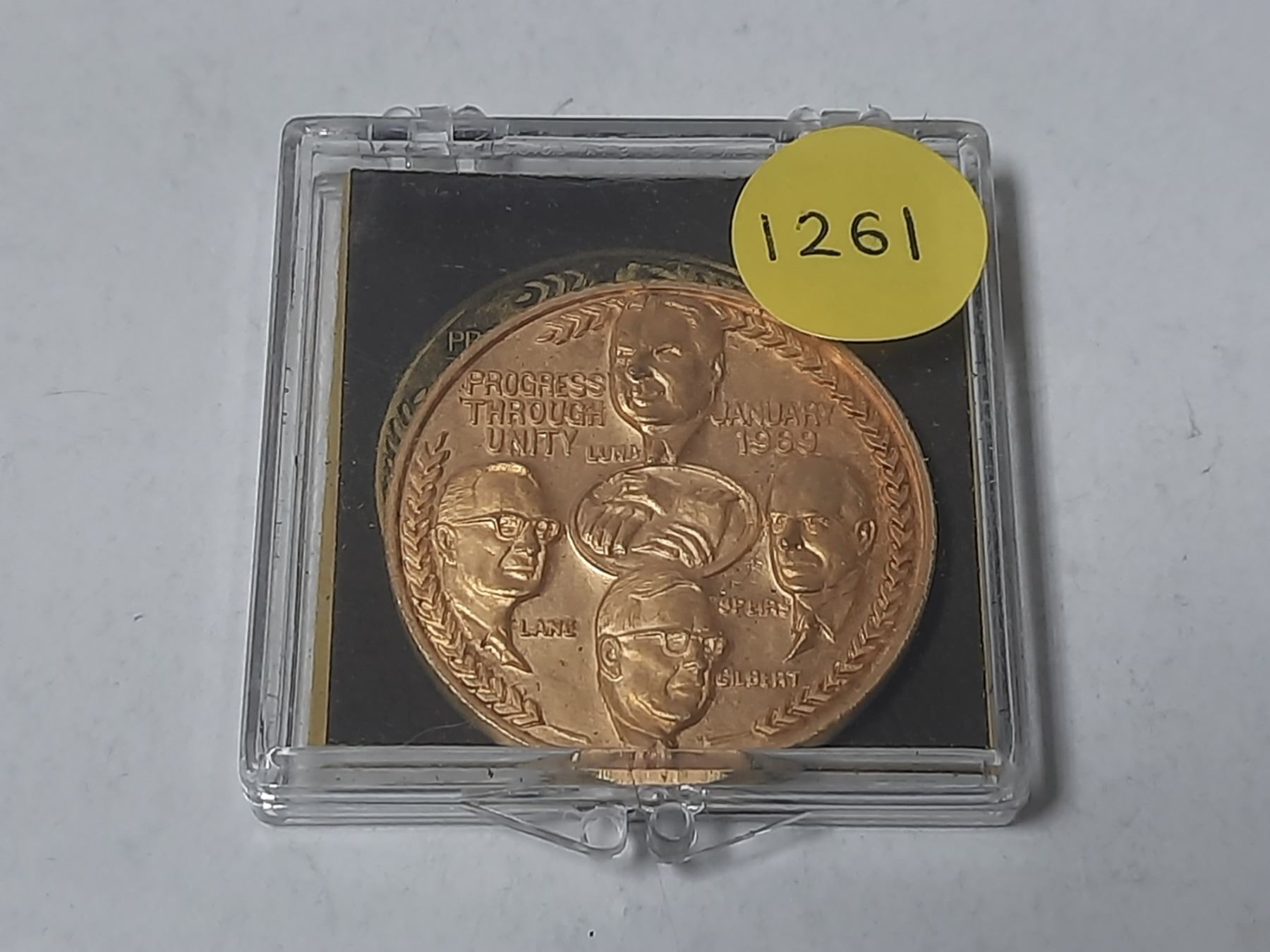 1969 United Transportation Union (UTU) commemorative medal, known for the slogan "Progress Through Unity".