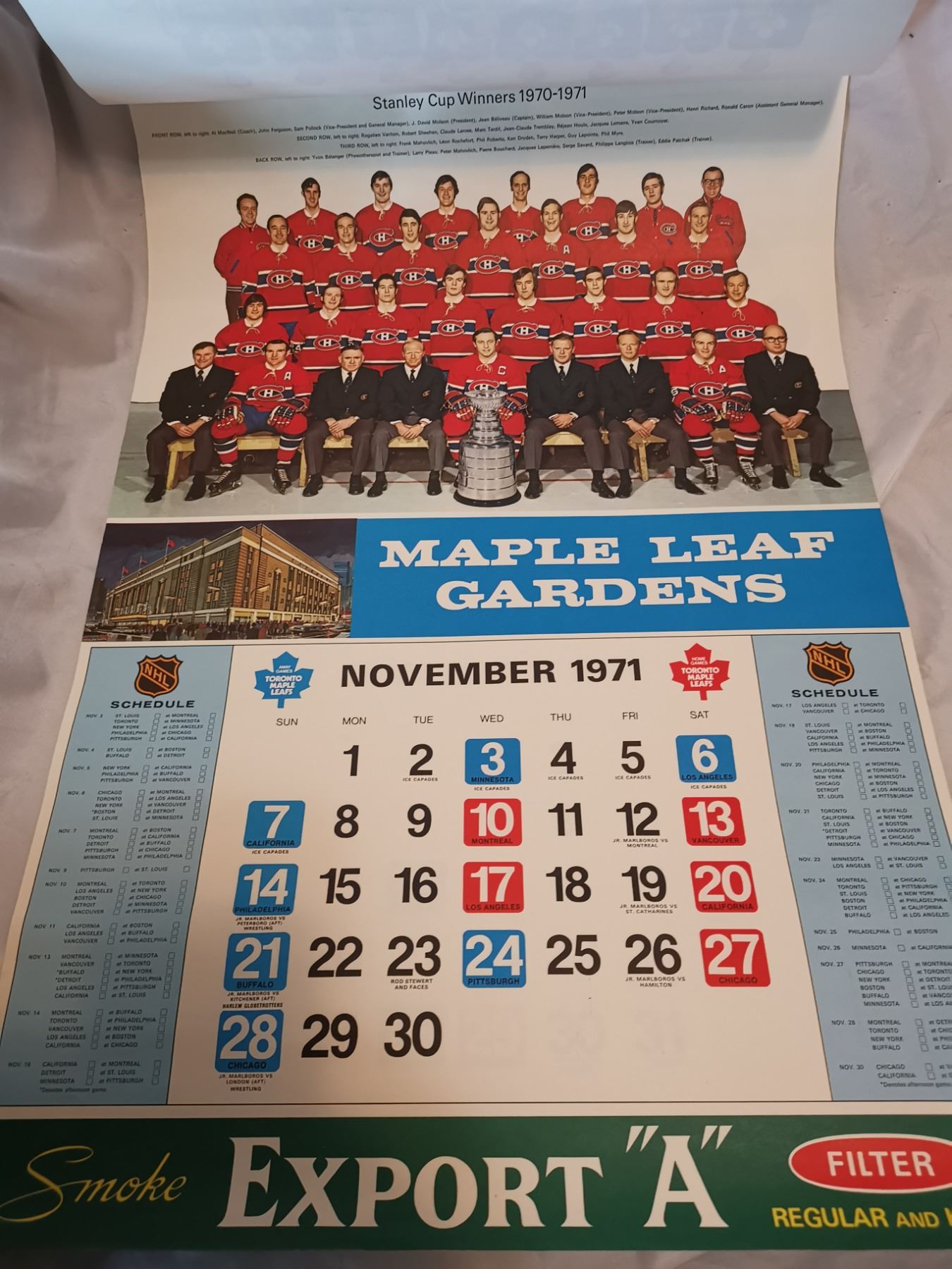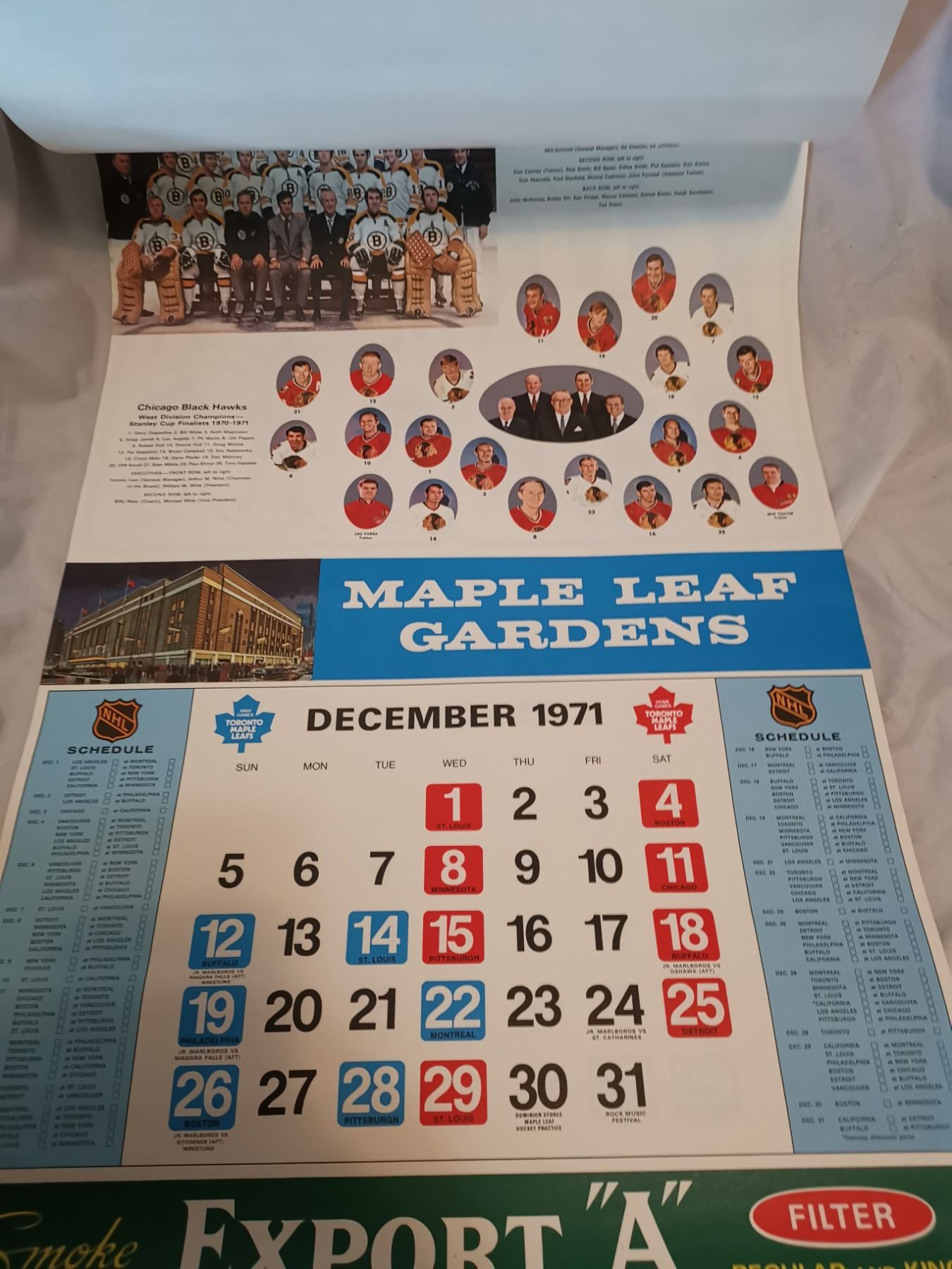 1970-71 Maple Leaf Gardens Calendar, Full Year, Great Condition