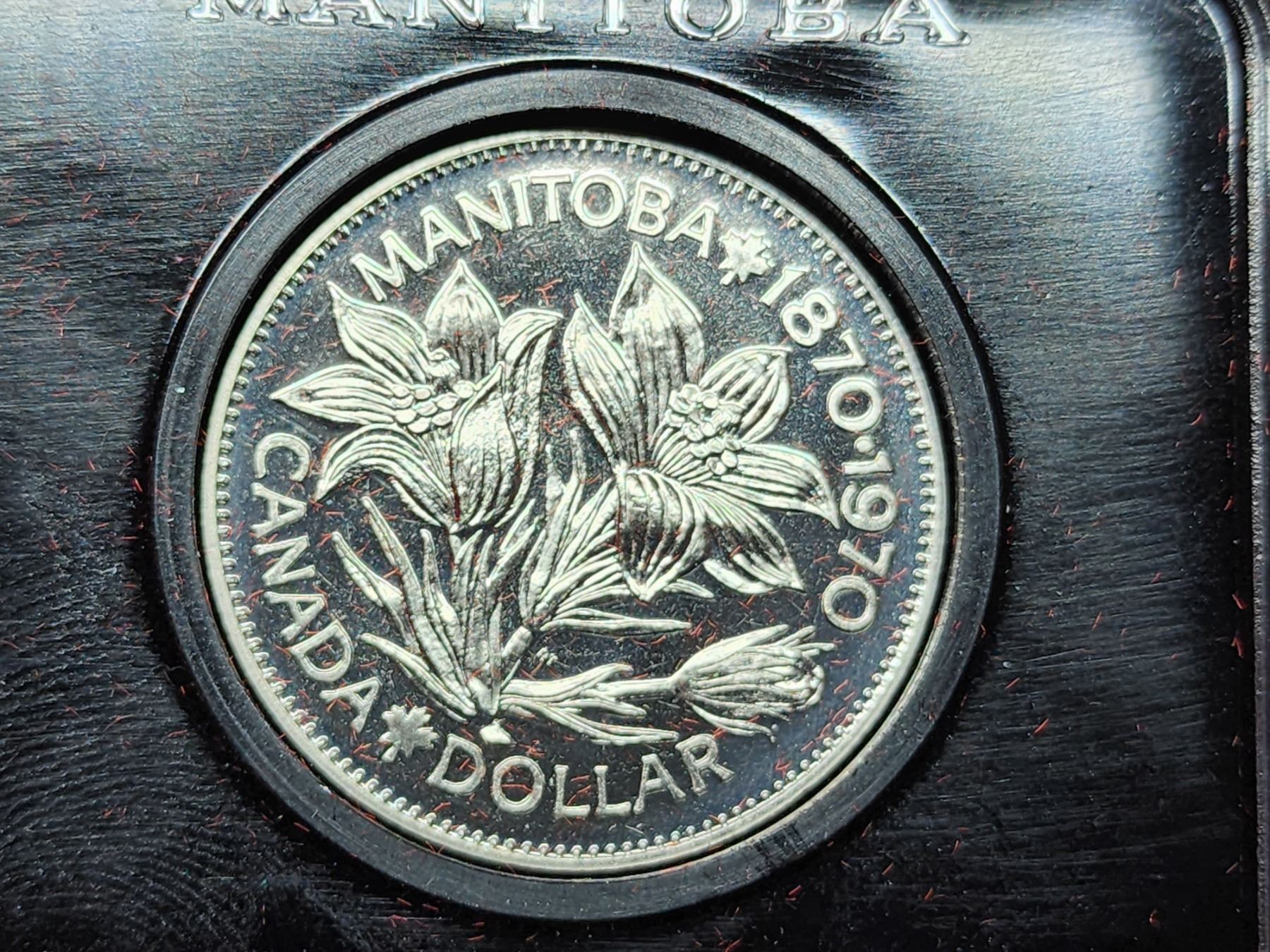1970 Manitoba Centennial Nickel Dollar. Specimen. Bright White. Housed in its original RCM case of issue.
