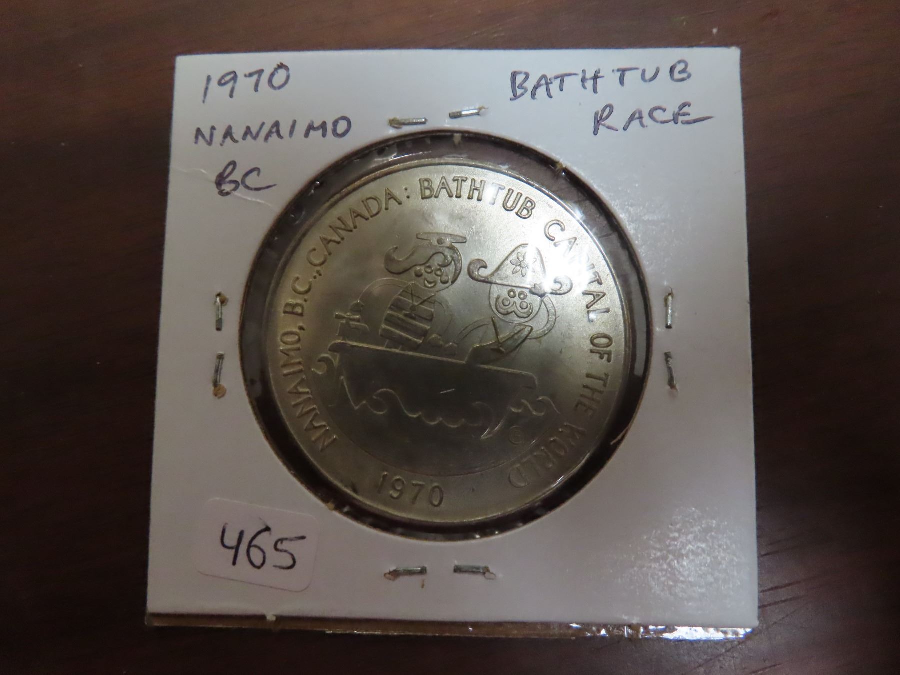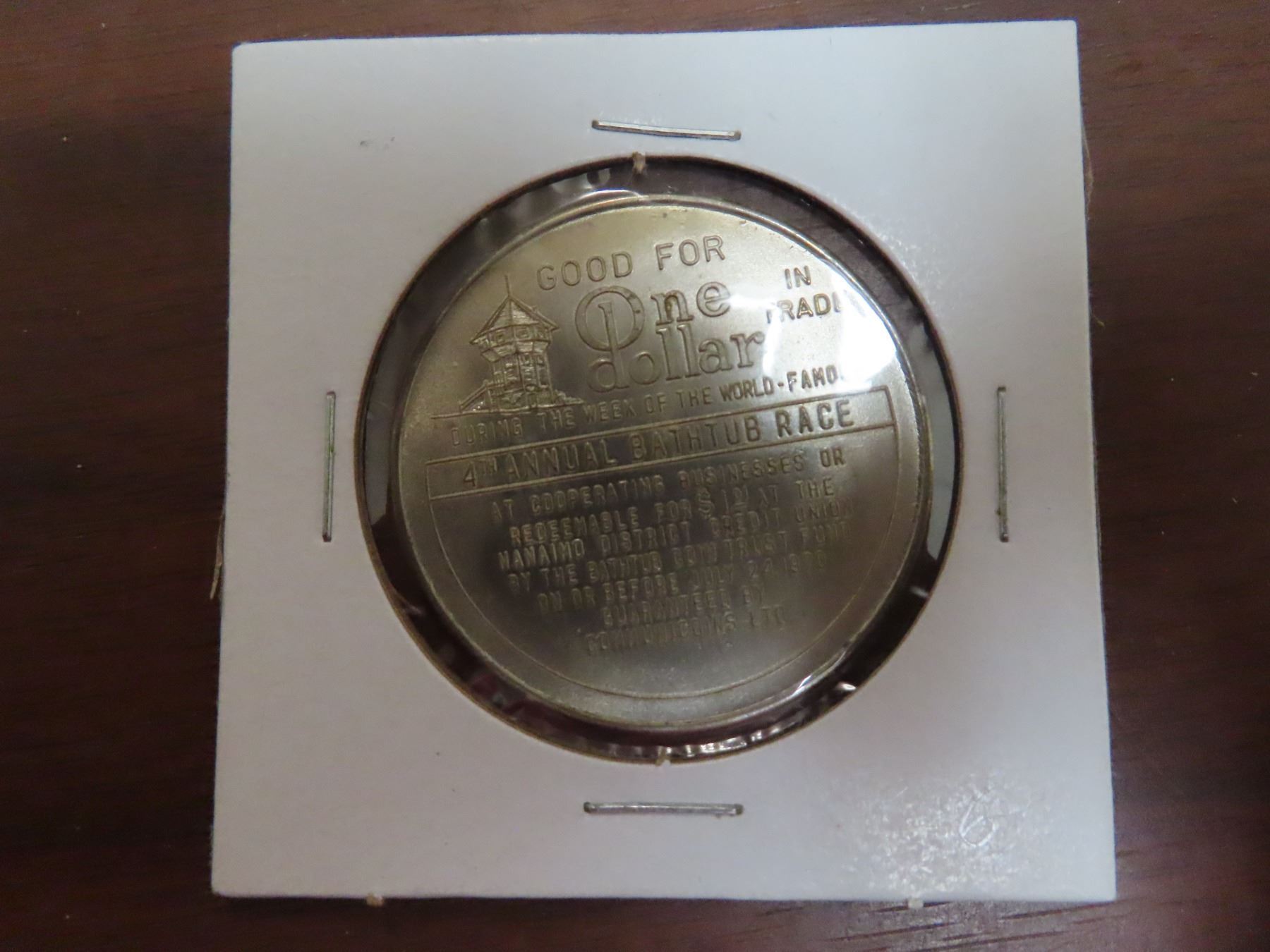 1970 Nanaimo, BC nickel Trade Dollar. 4th Annual Bathtub Race. Redeemable for $1.01. 38mm. BU.