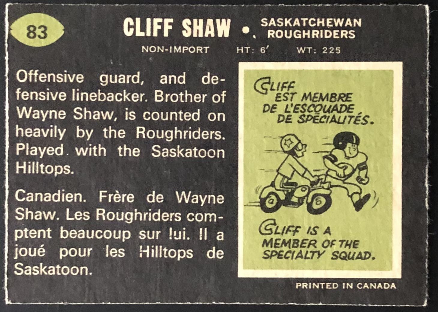 Card #83 football, CFL, vintage, OPC