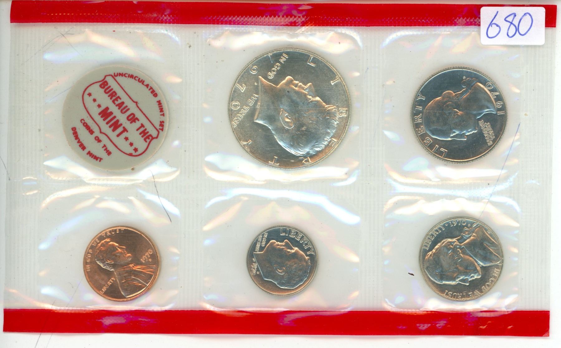 1970 U.S. Mint Set. Denver Mint. Kennedy Half Dollar is Clad Silver.