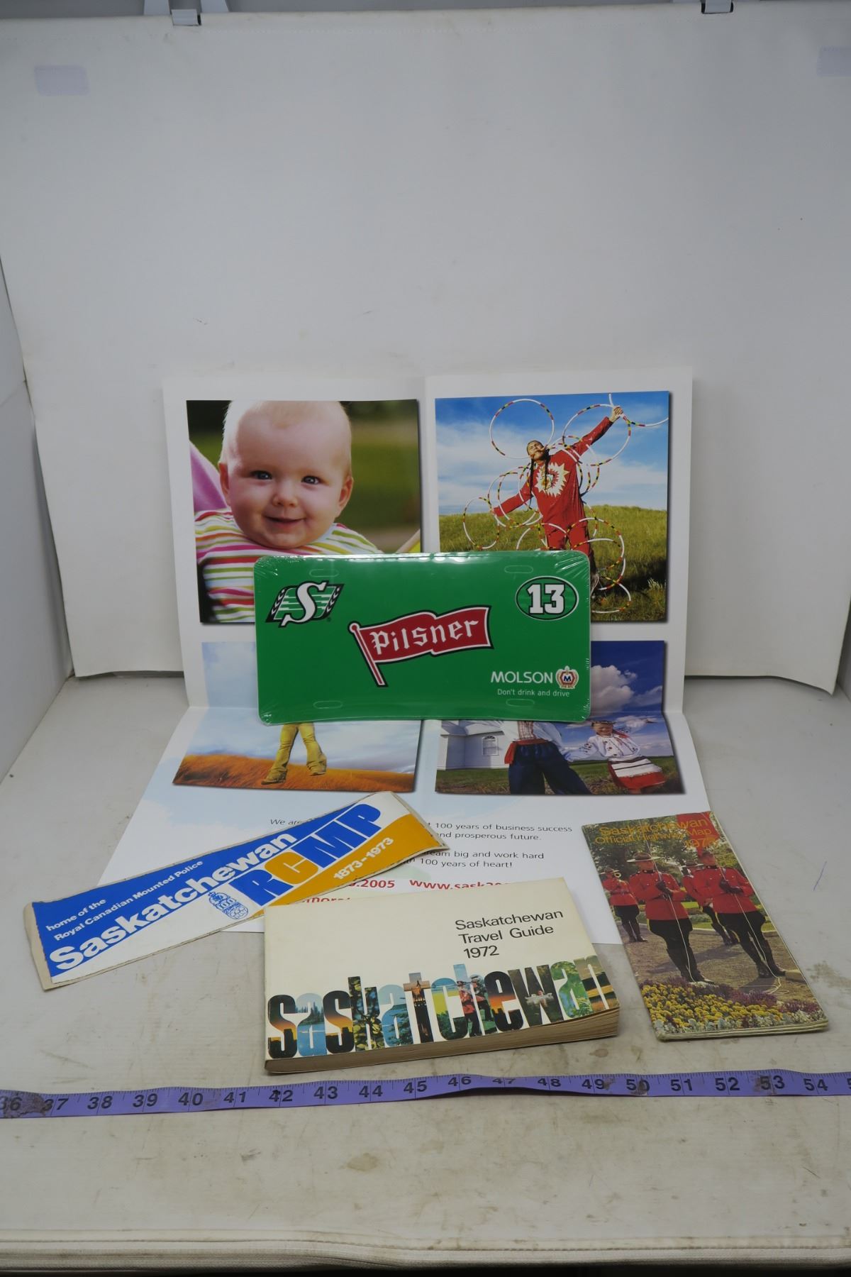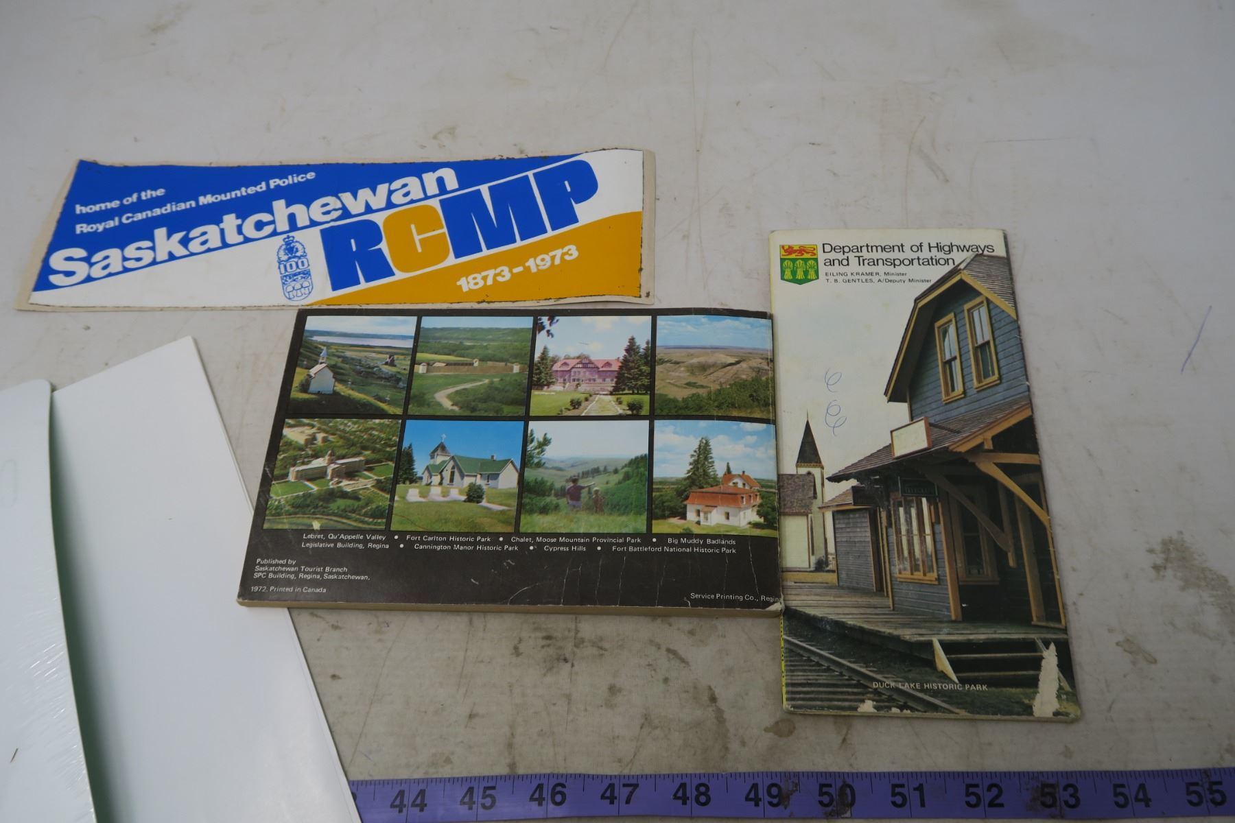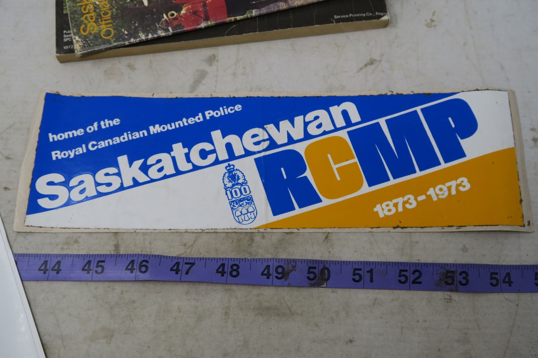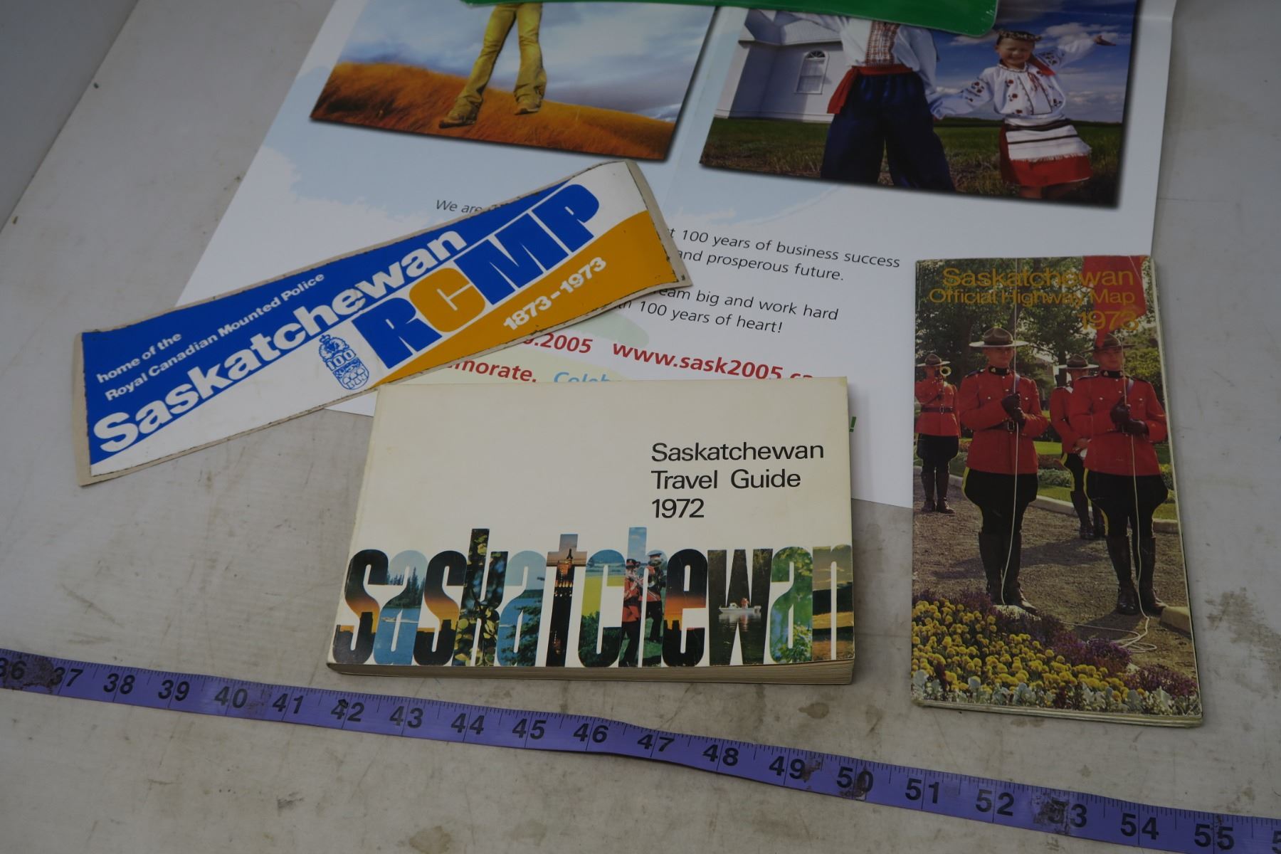 1970's Saskatchewan Travel Map & Book, 1973 RCMP Sticker, Centennial Poster