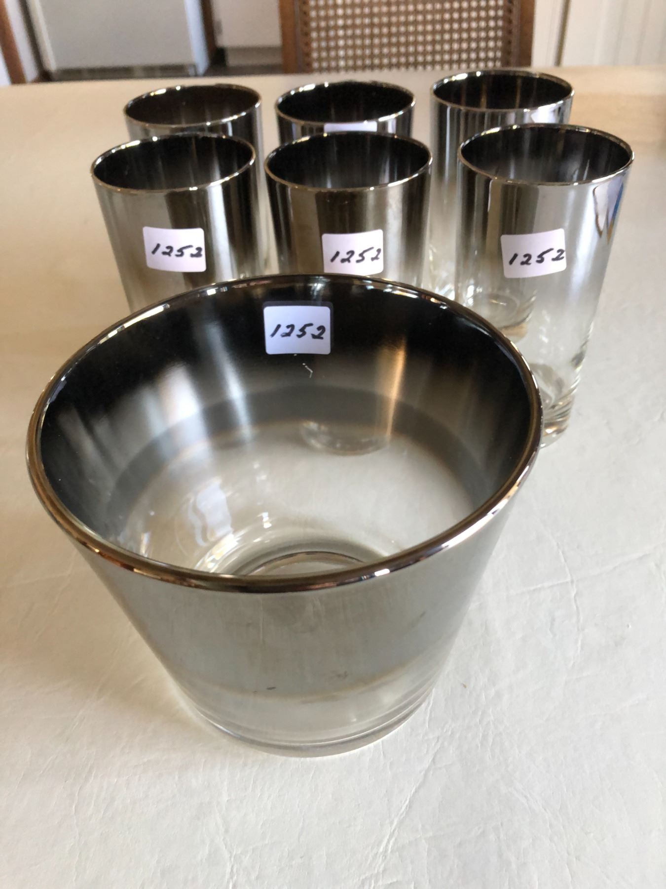 1970s Vitrin Queen’s Lusterware 6 Glasses + Ice Bucket