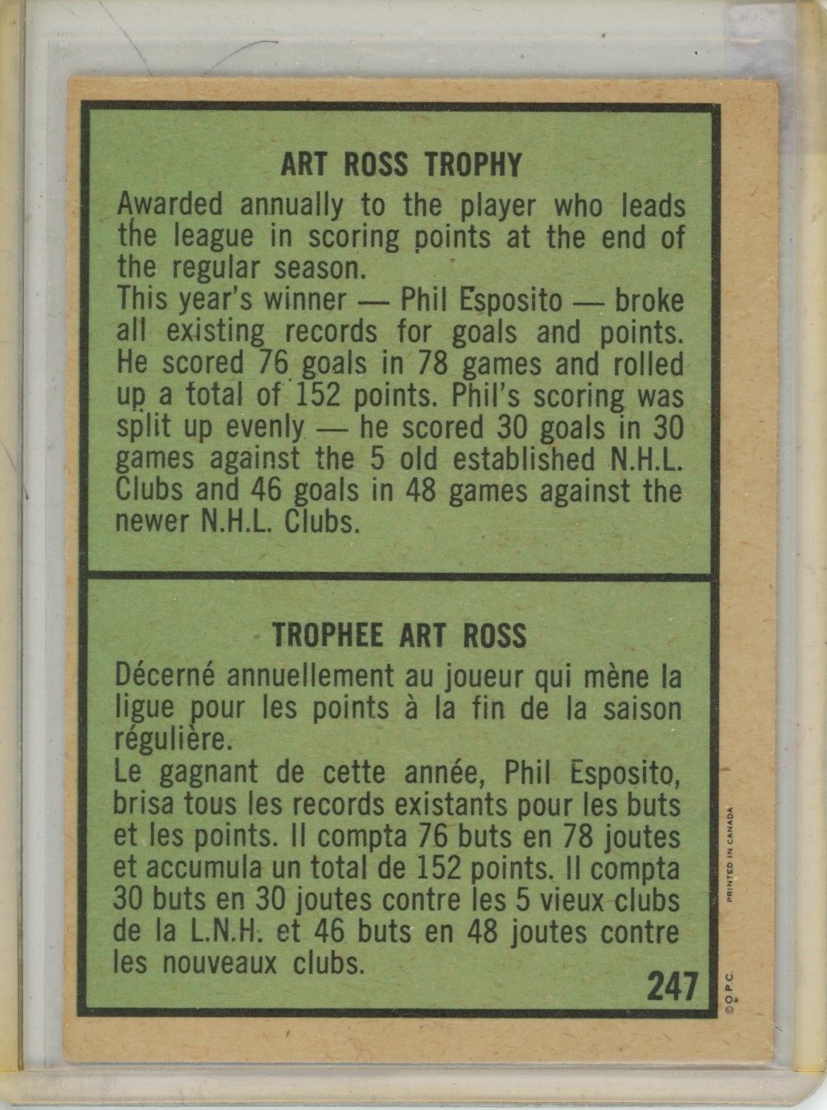 1971-72 OPC Phil Esposito Art Ross Trophy #247