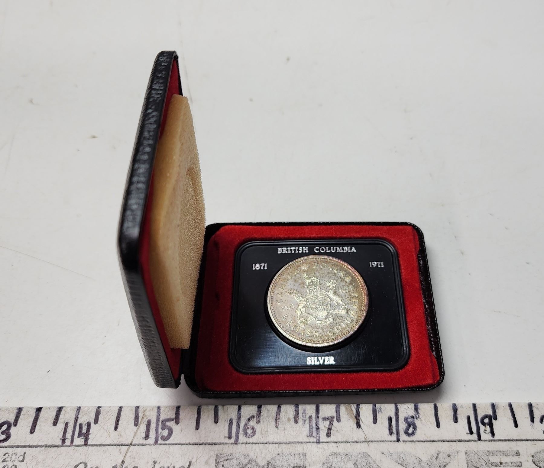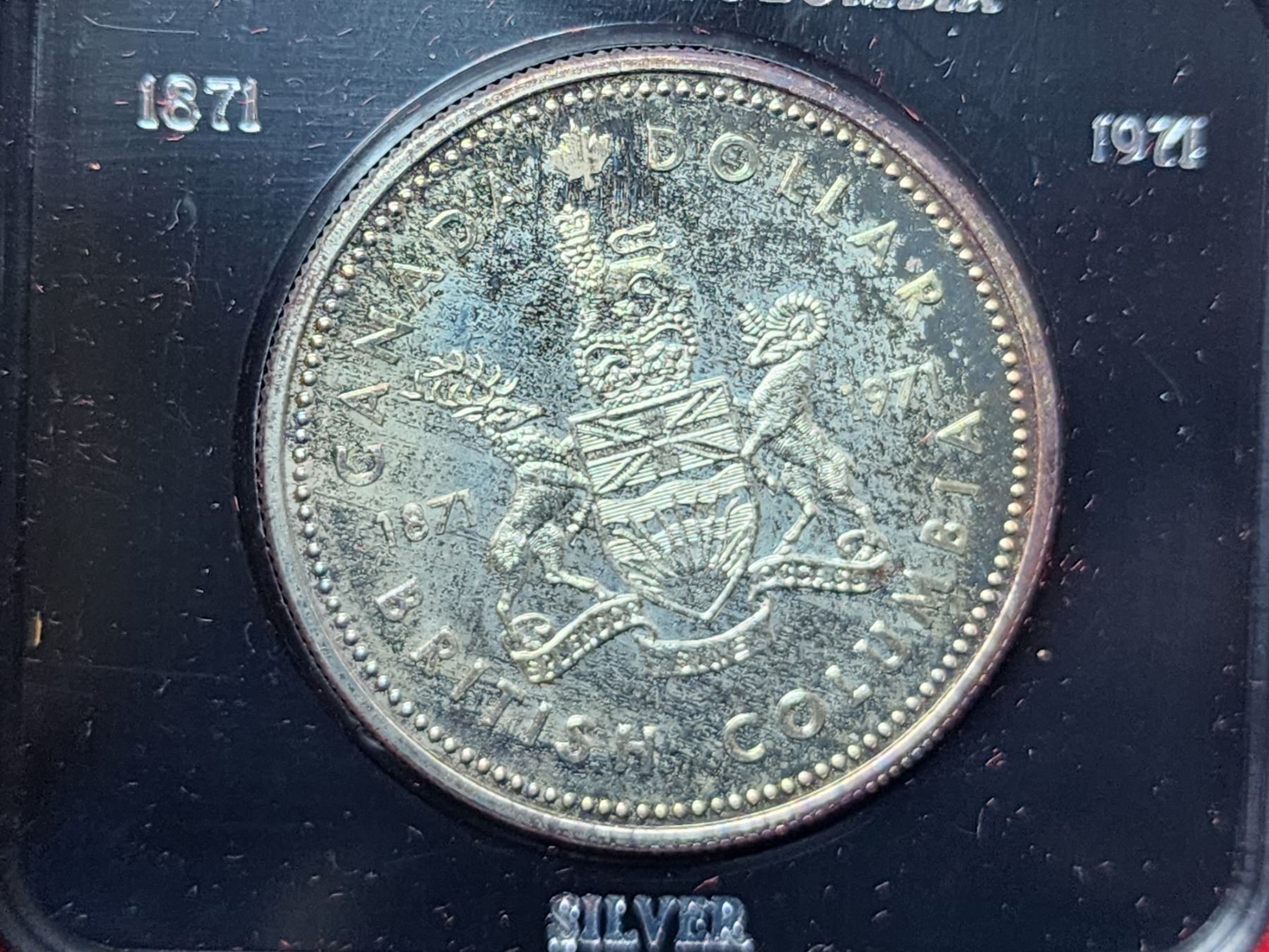 1971 British Columbia Centennial Silver Dollar. Specimen. Nicely Toned. Housed in its original RCM case of issue.