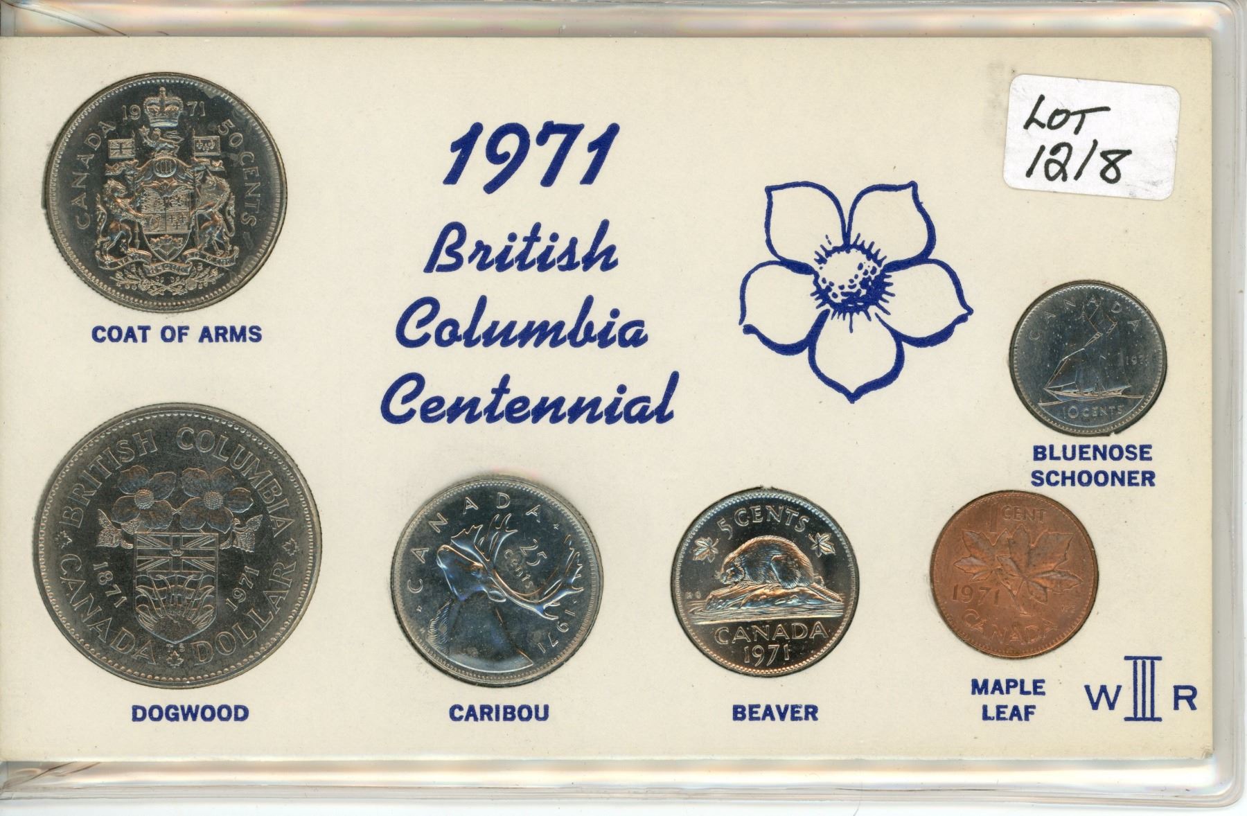 1971 6 Coin Set (sealed paper) including 1971 British Columbia Nickel Dollar