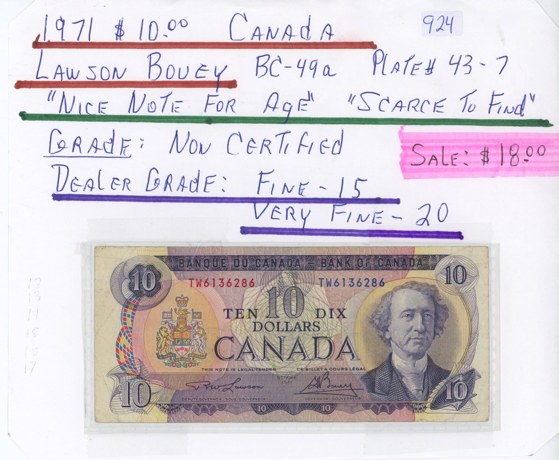 1971 Canadian 10 dollar bill - TW Prefix - Lawson-Bouey