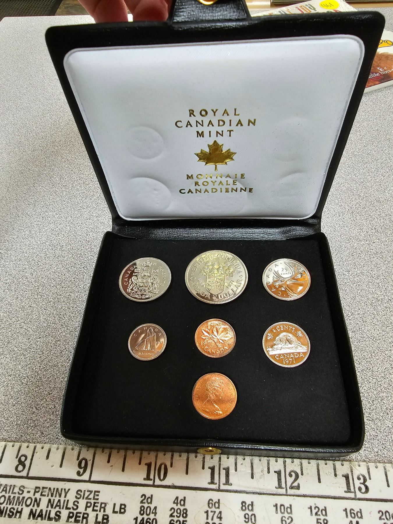 1971 Double Cent Custom Set. 7-coin set housed in original black vinyl case with Coat of Arms & CANADA stamped in Gold.