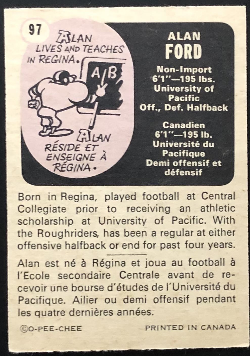 Card #97 football, CFL, vintage, hall of fame, OPC
