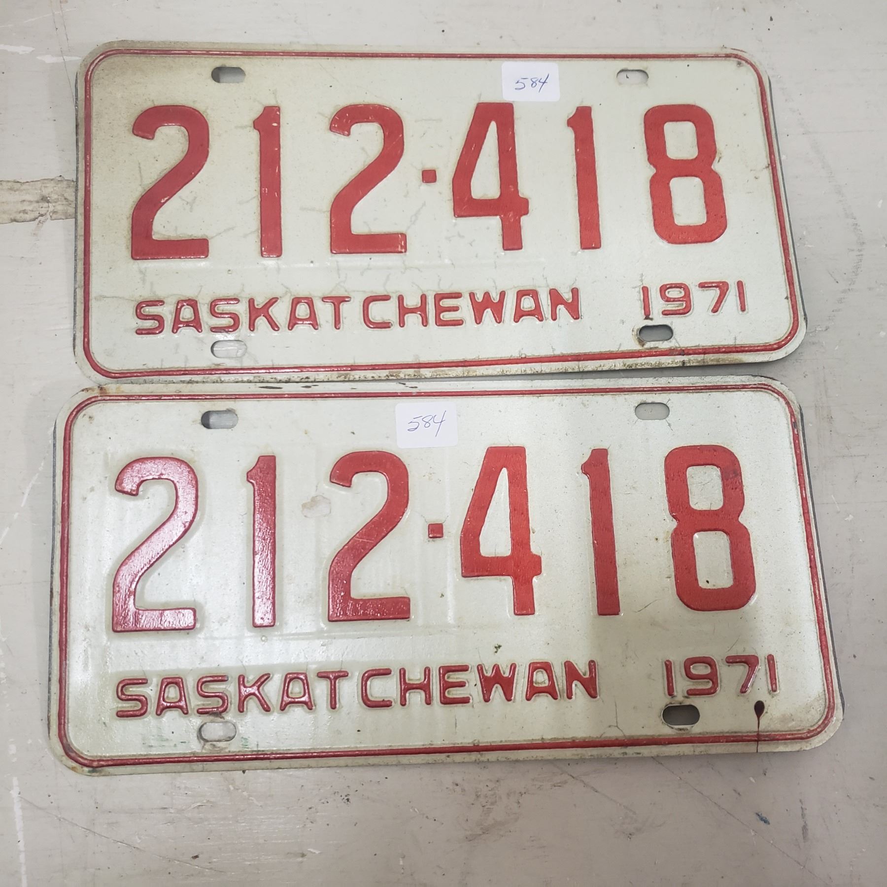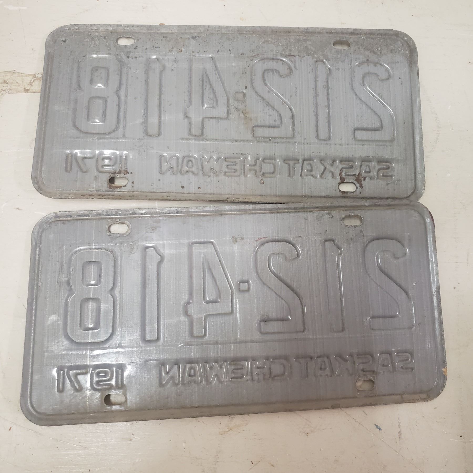 1971 Pair Saskatchewan Liscence Plate vintage original Sask plate