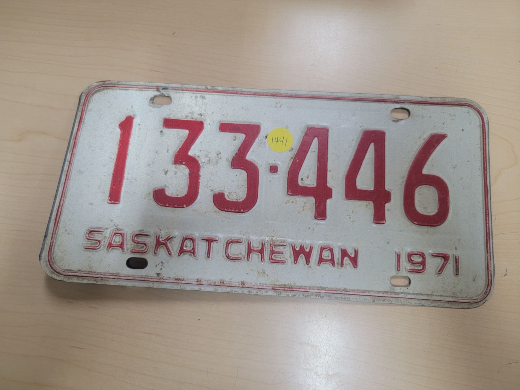 1971 Sask license plate 133-446