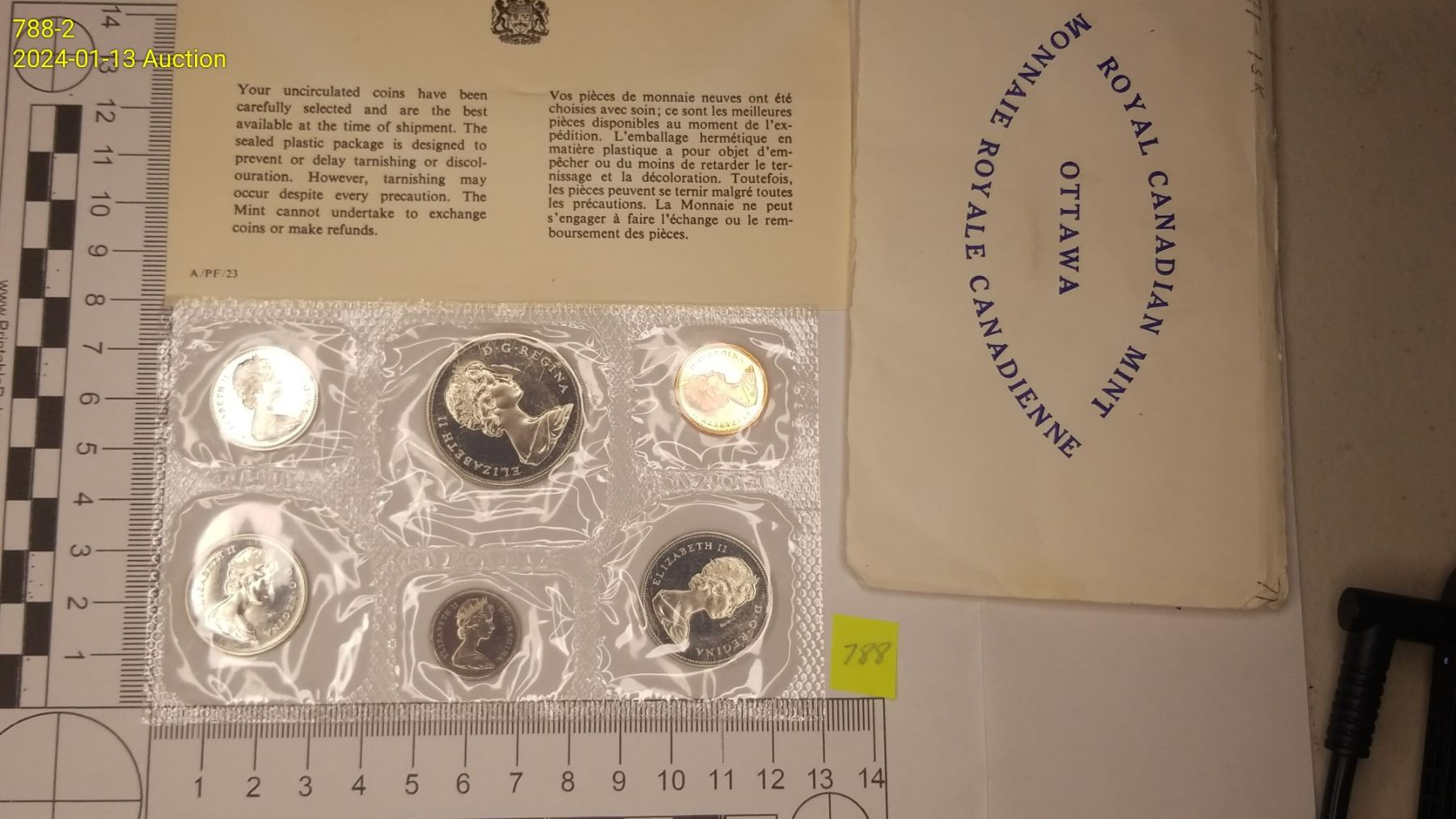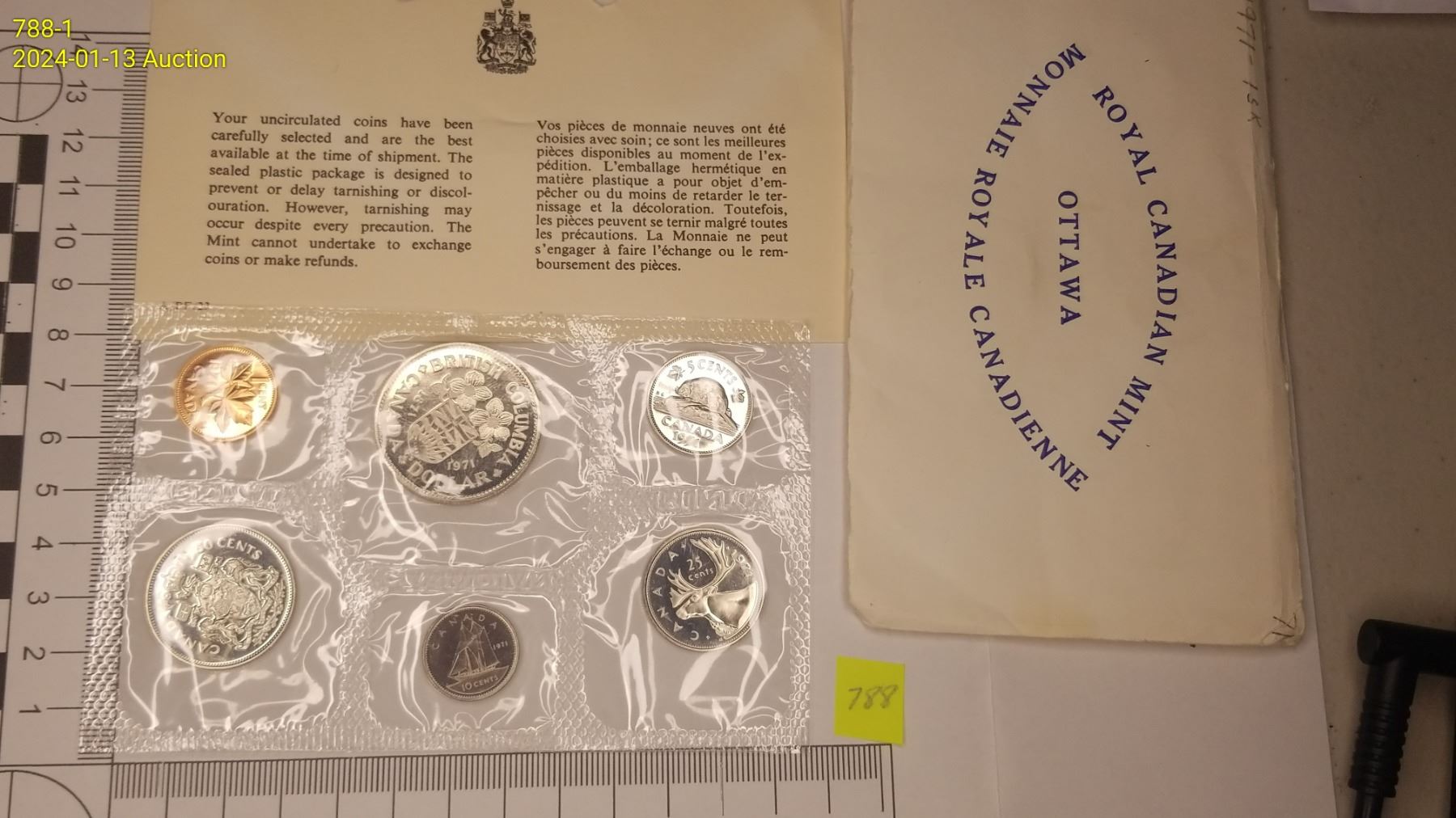 1971 Six Coins Silver Dollar, Fifty Cent Piece, Quarter, Dime, Nickel, Penny Set
