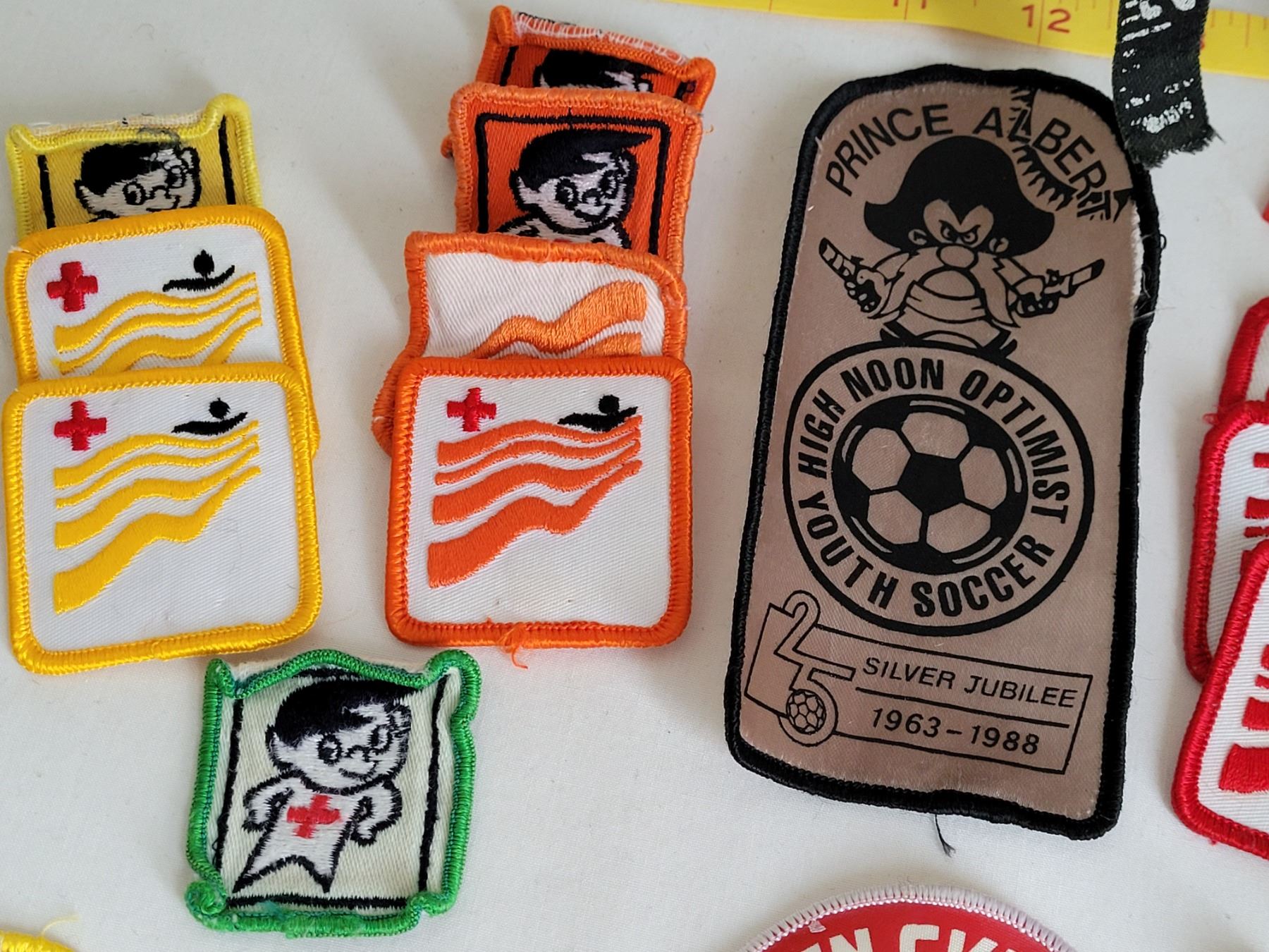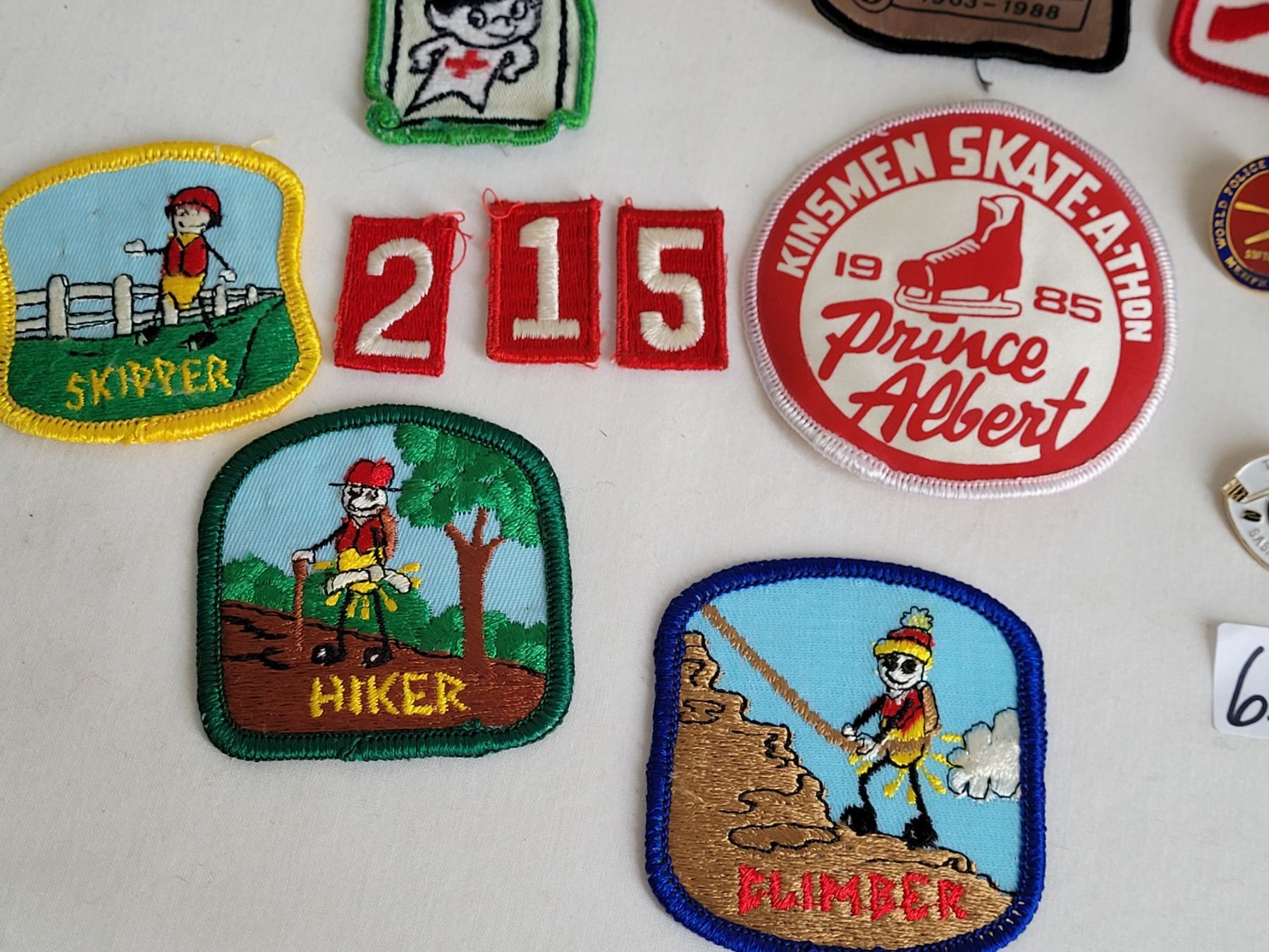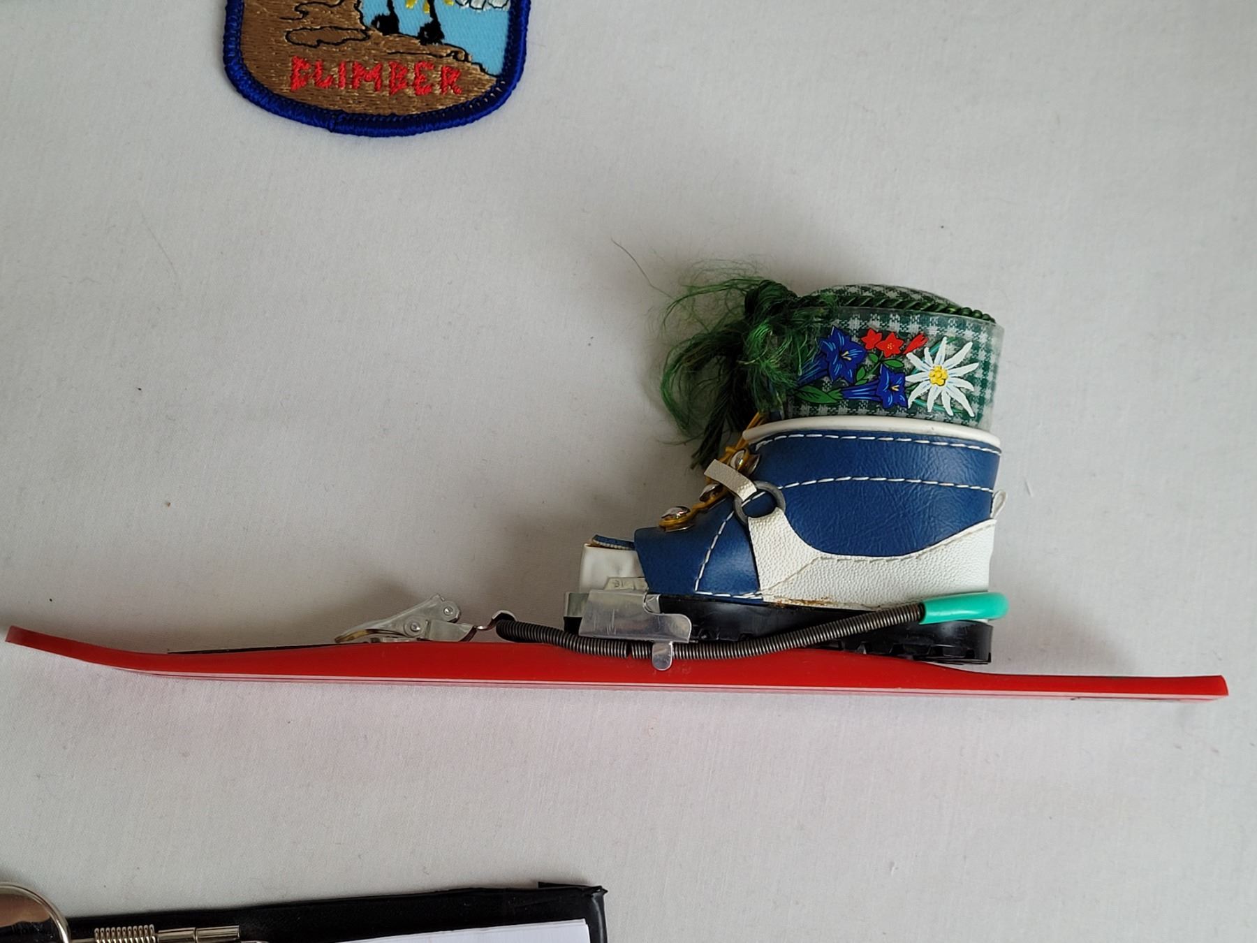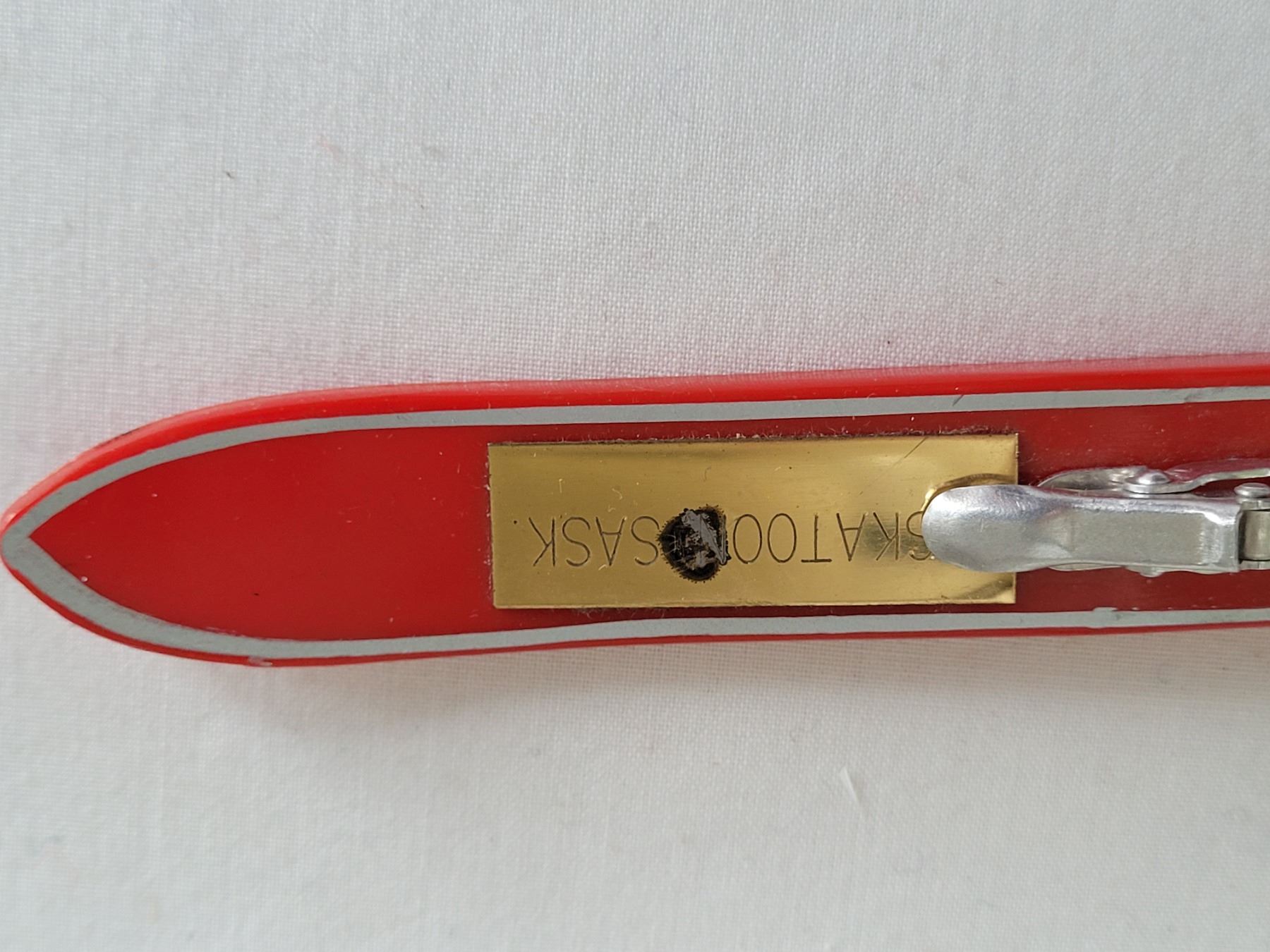 1971 Souvenir mini ski from Canadian winter games, Saskatoon Sk. Plus Mid to late century assortment of sports badges.