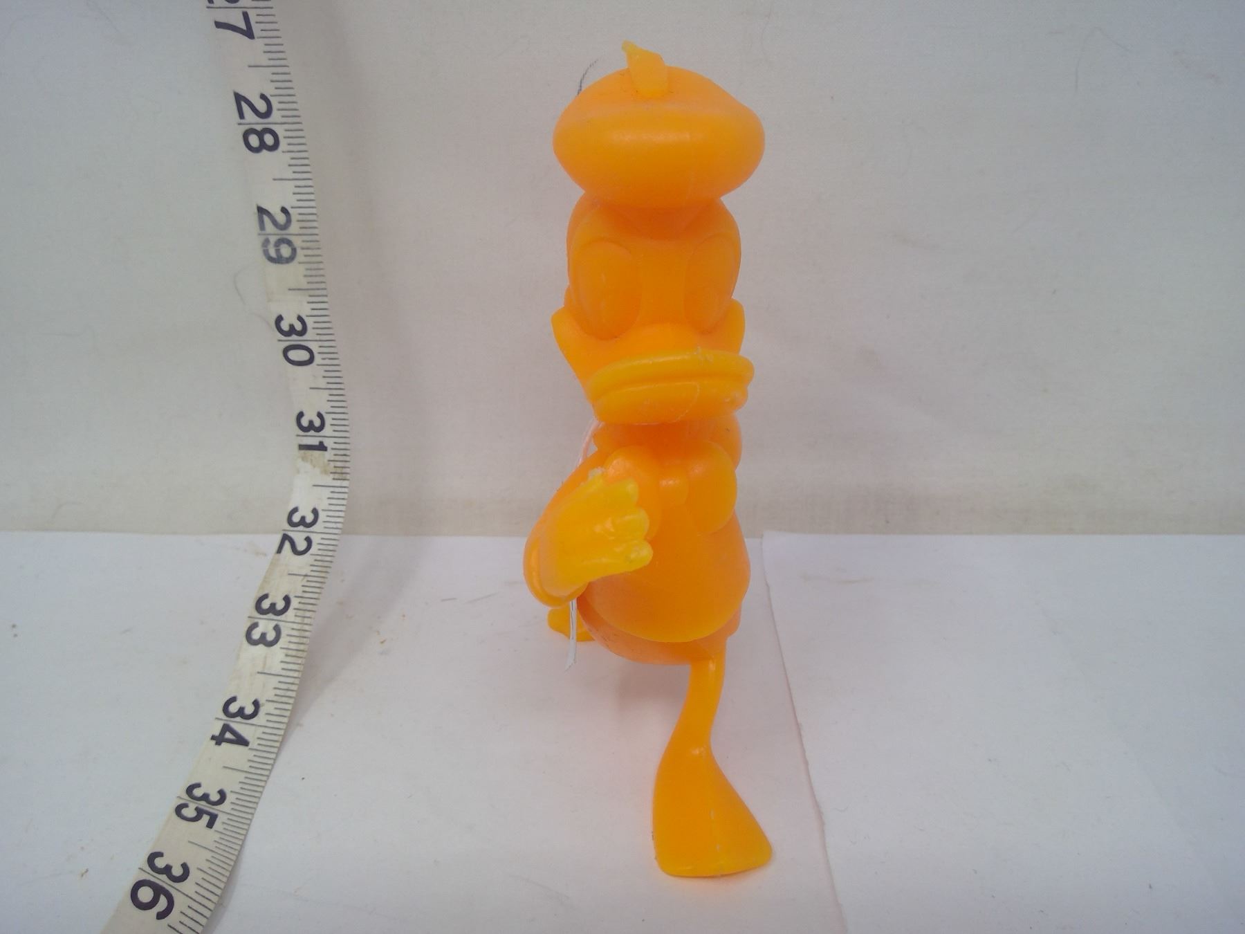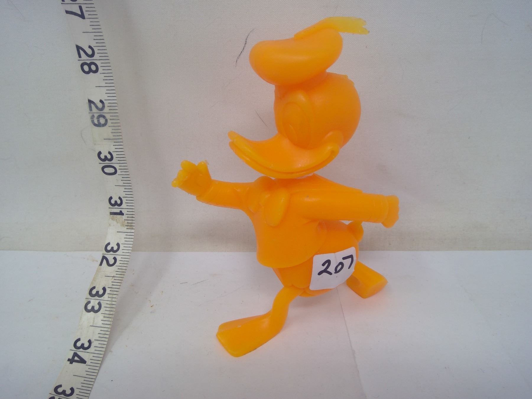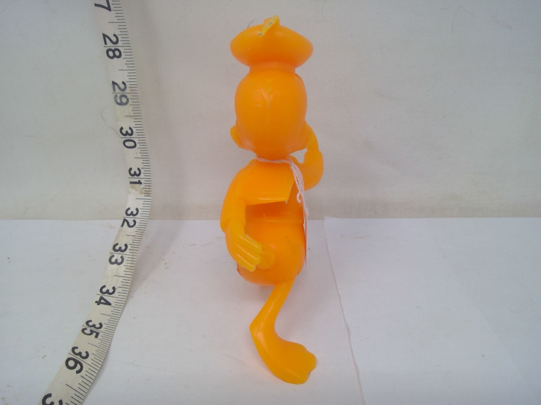 Vintage 1971 Day-Glo orange modeled Donald Duck strutting. Louis Marx and Co. Walt Disney Productions. RARE to find. Height 6”.