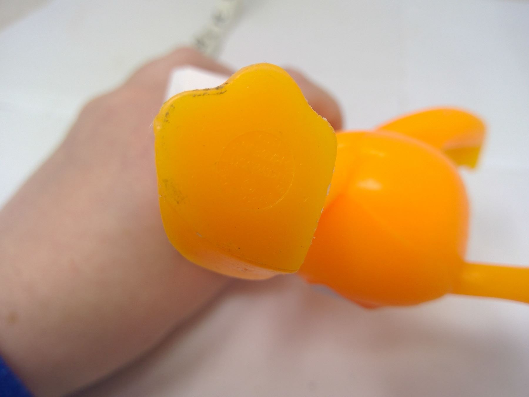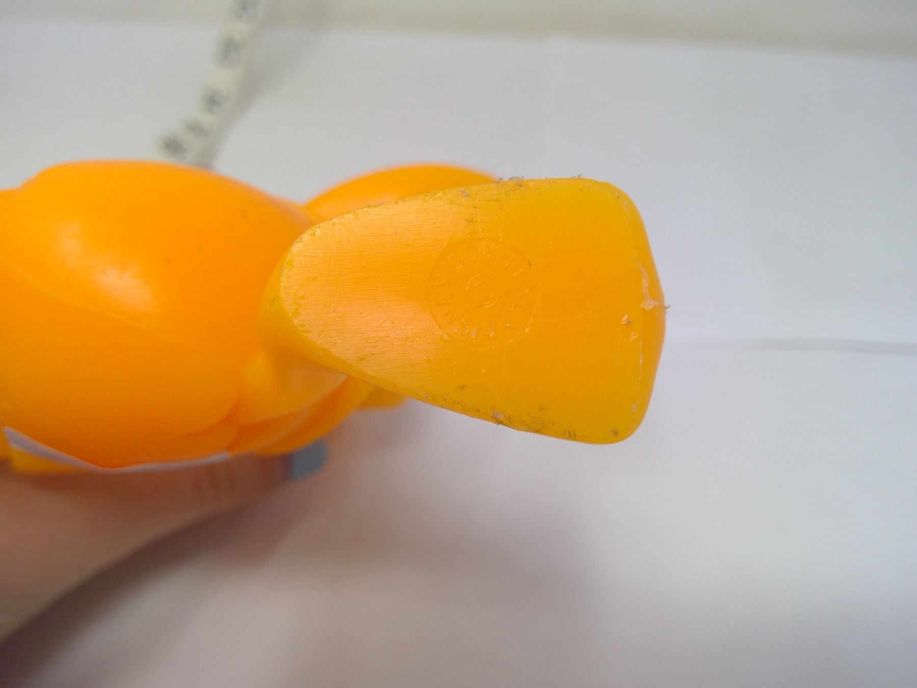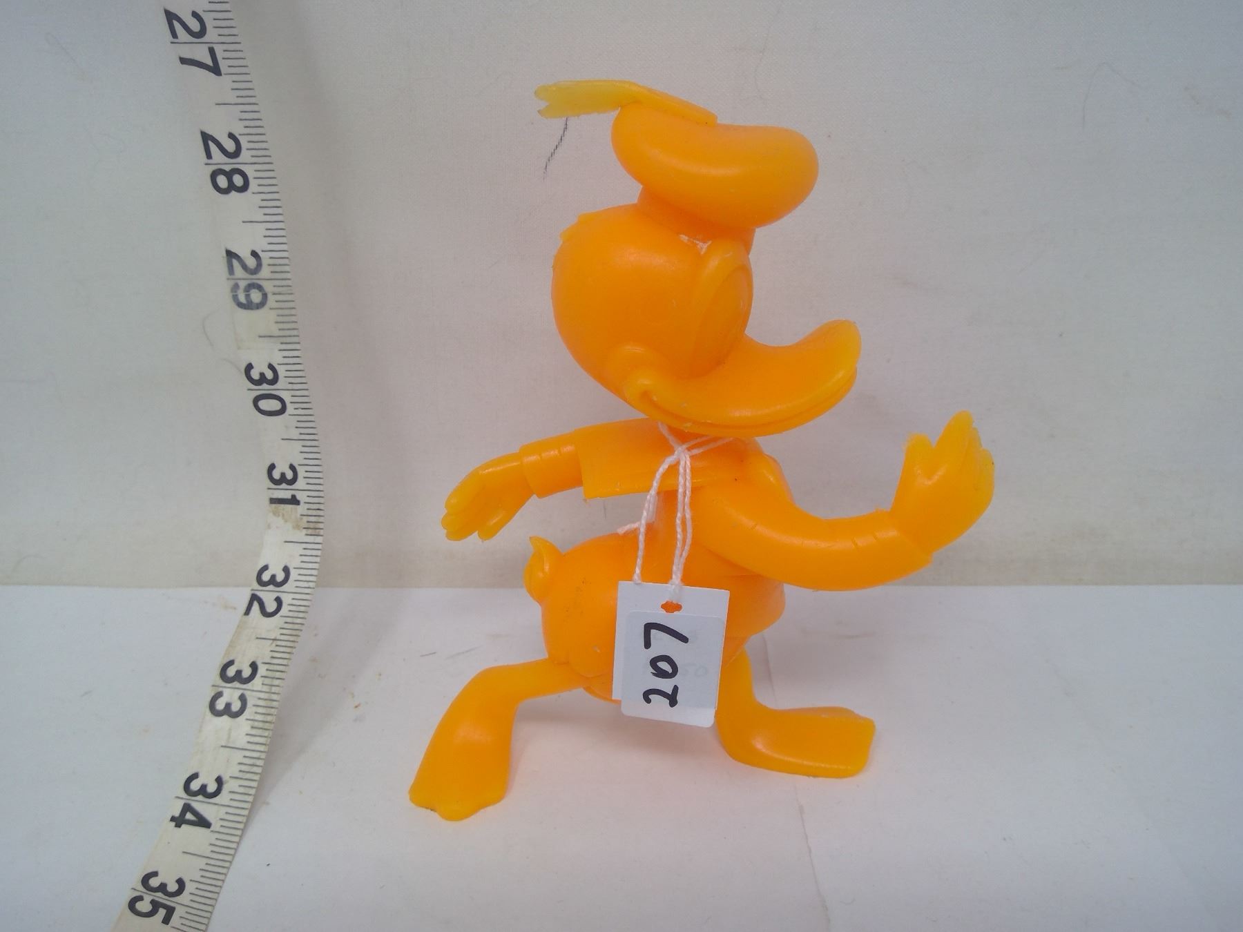 Vintage 1971 Day-Glo orange modeled Donald Duck strutting. Louis Marx and Co. Walt Disney Productions. RARE to find. Height 6”.