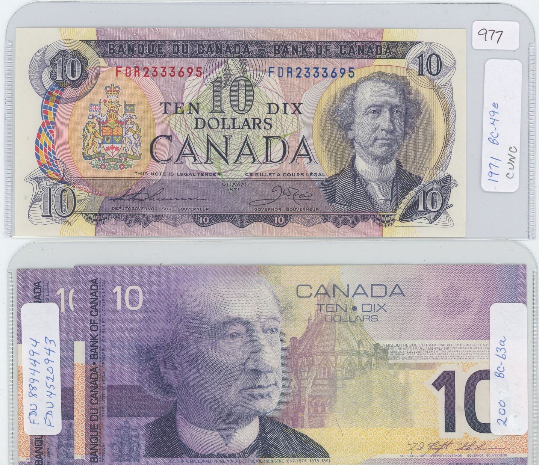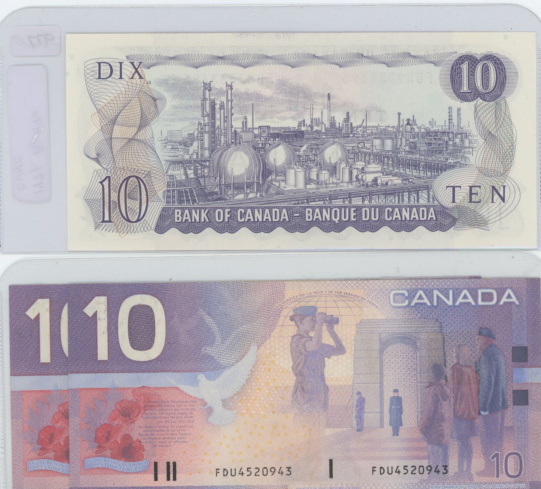 1971 ans Two 2001 Canadian Ten Dollar Bills - CUNC