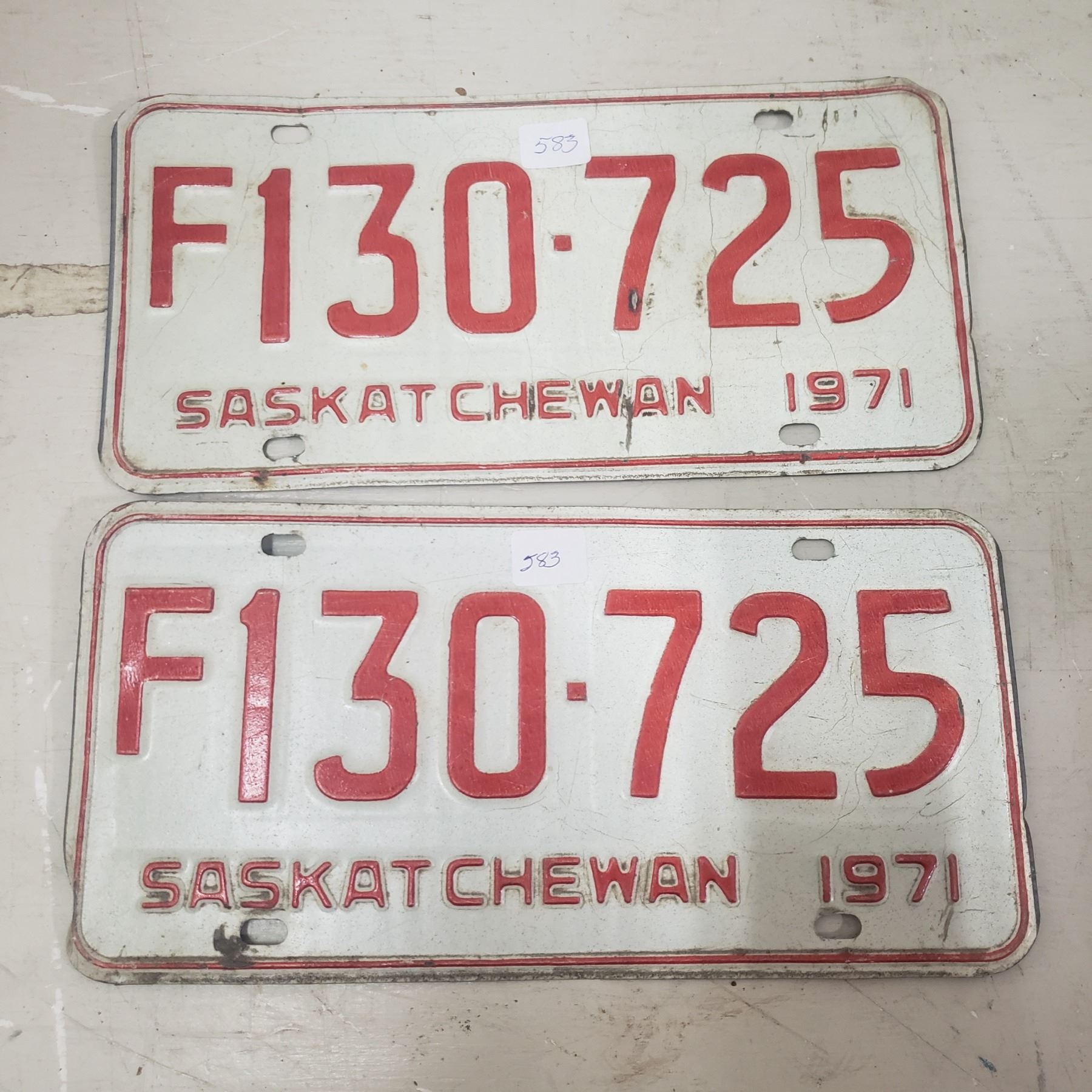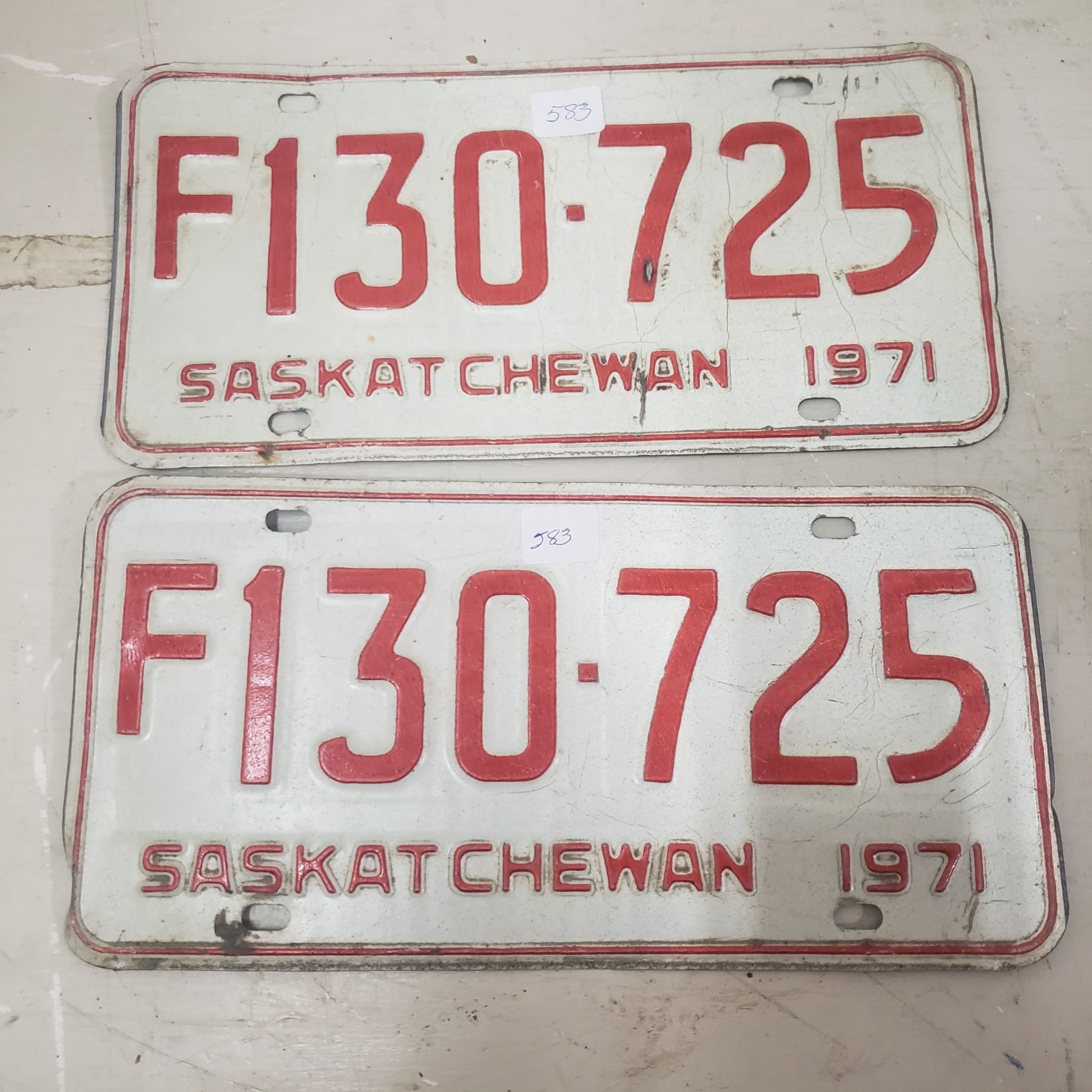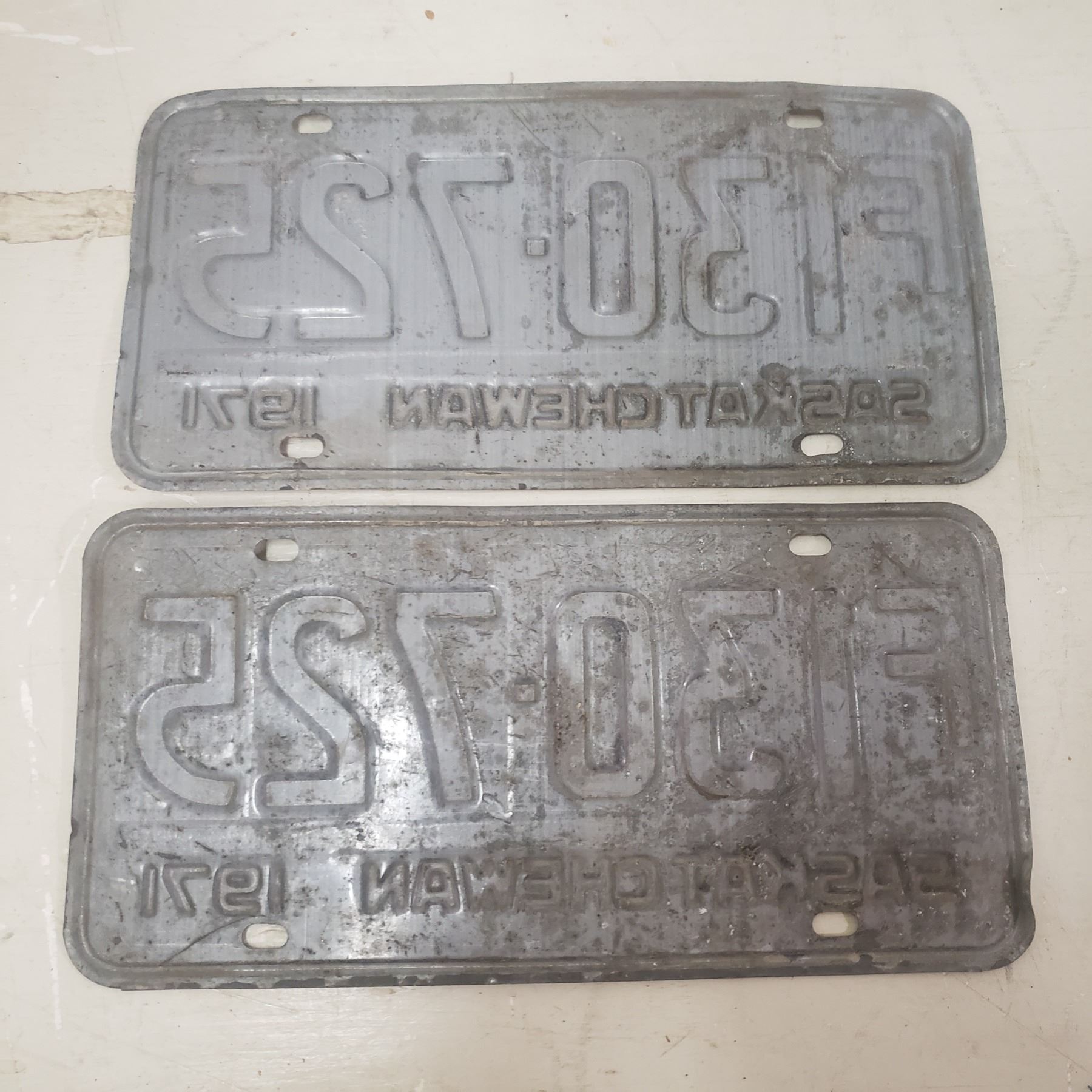 1971 pair Saskatchewan Liscence Plate vintage original Sask plate