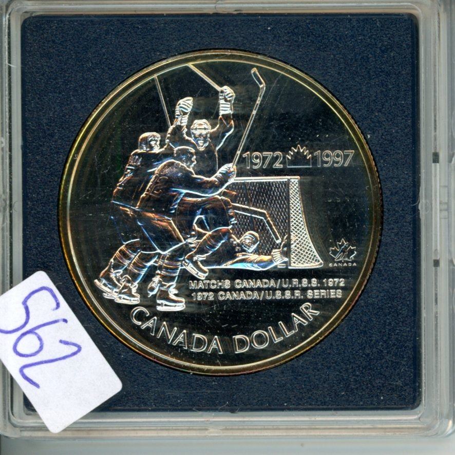 1972 - 1997 Canada-Russia Hockey Series Silver Dollar. Specimen. Housed in its original hard plastic holder.