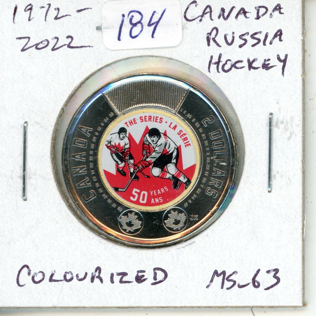 1972 – 2022 Canada Russia Hockey Series Toonie. Colourized. MS-63 from an original RCM roll.